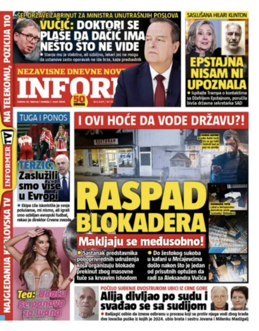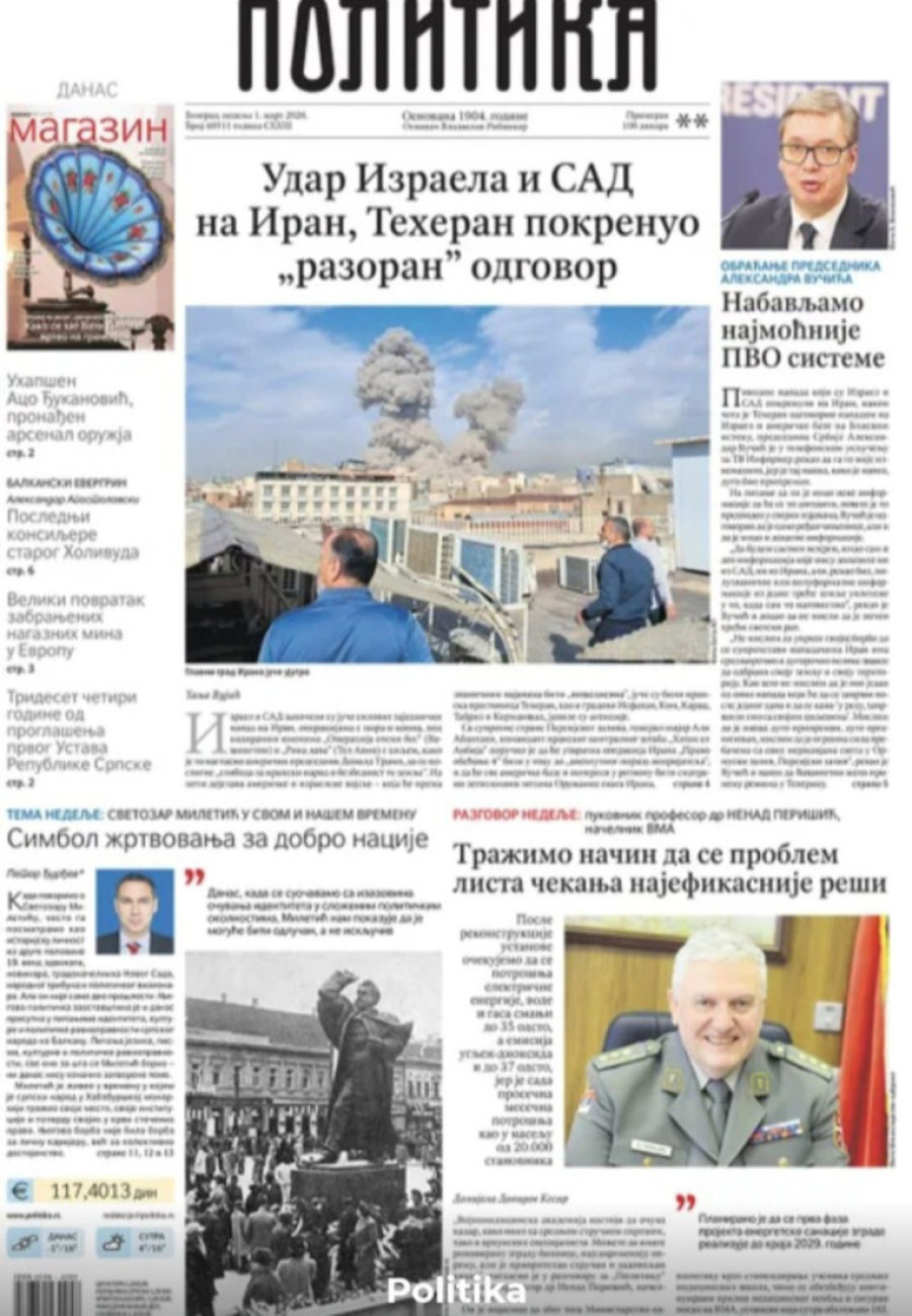 Dnevne novine u Srbiji za nedelju, 1. mart 2026. godine, na naslovnim stranama najavljuju brojne aktuelne društveno-političke teme.