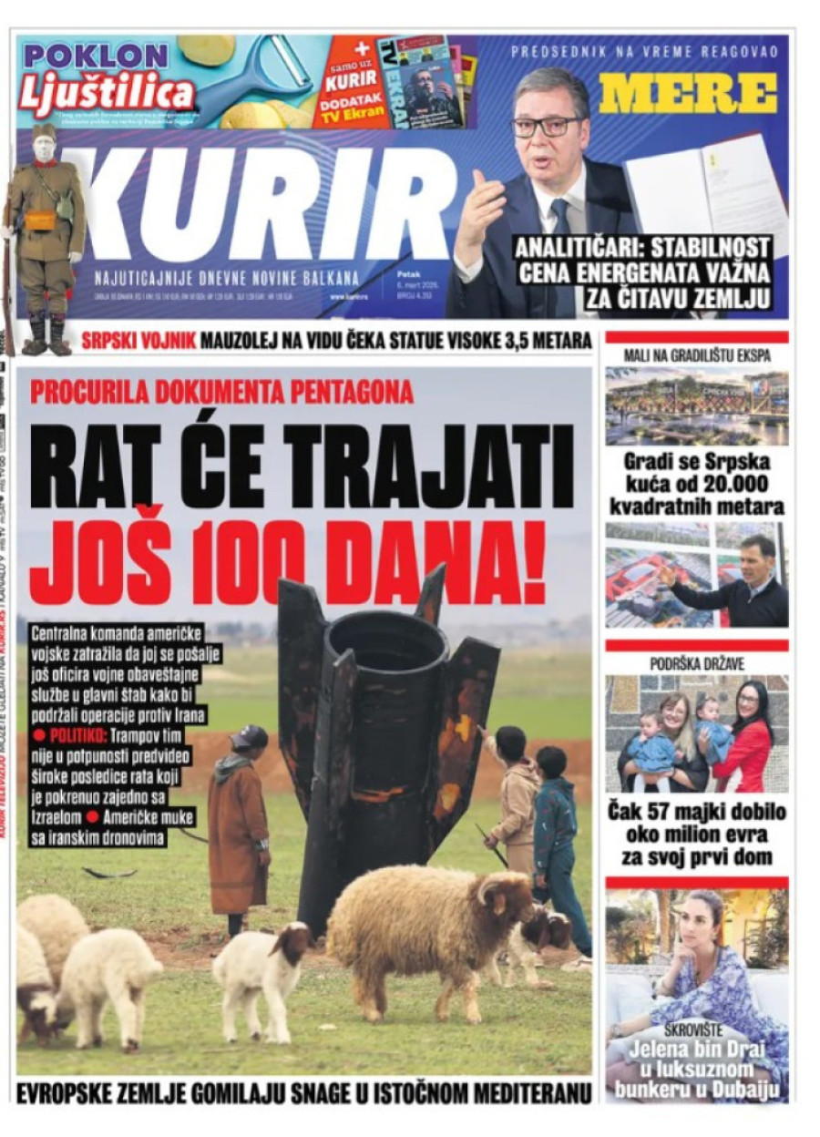 Naslovne strane dnevnih novina: Prelistavanje štampe za 6. mart 2026. godine