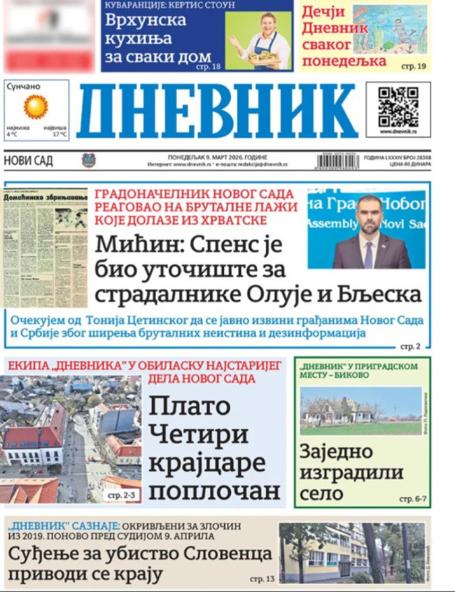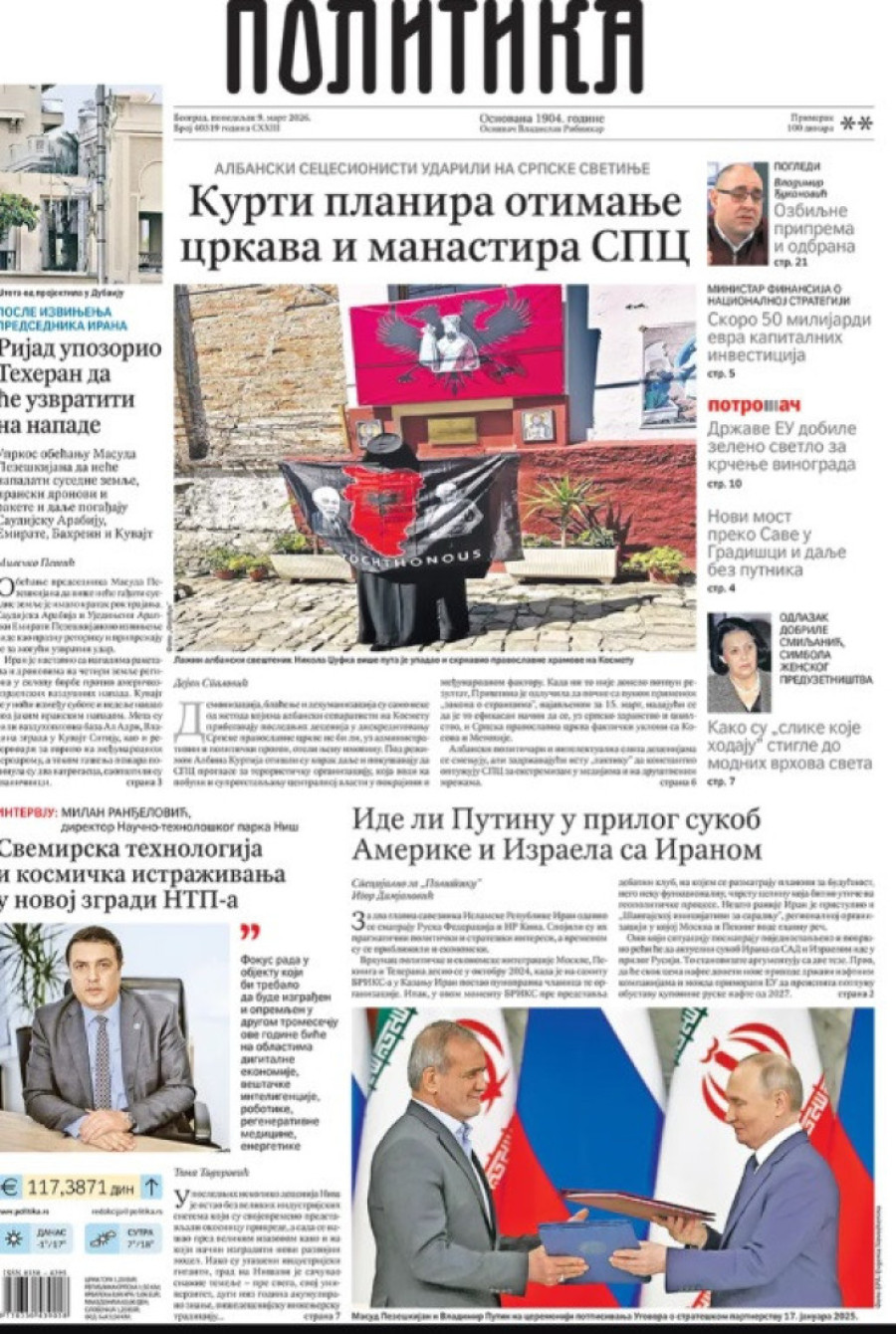 Naslovne strane dnevnih novina: Prelistavanje štampe za 9. mart 2026. godine