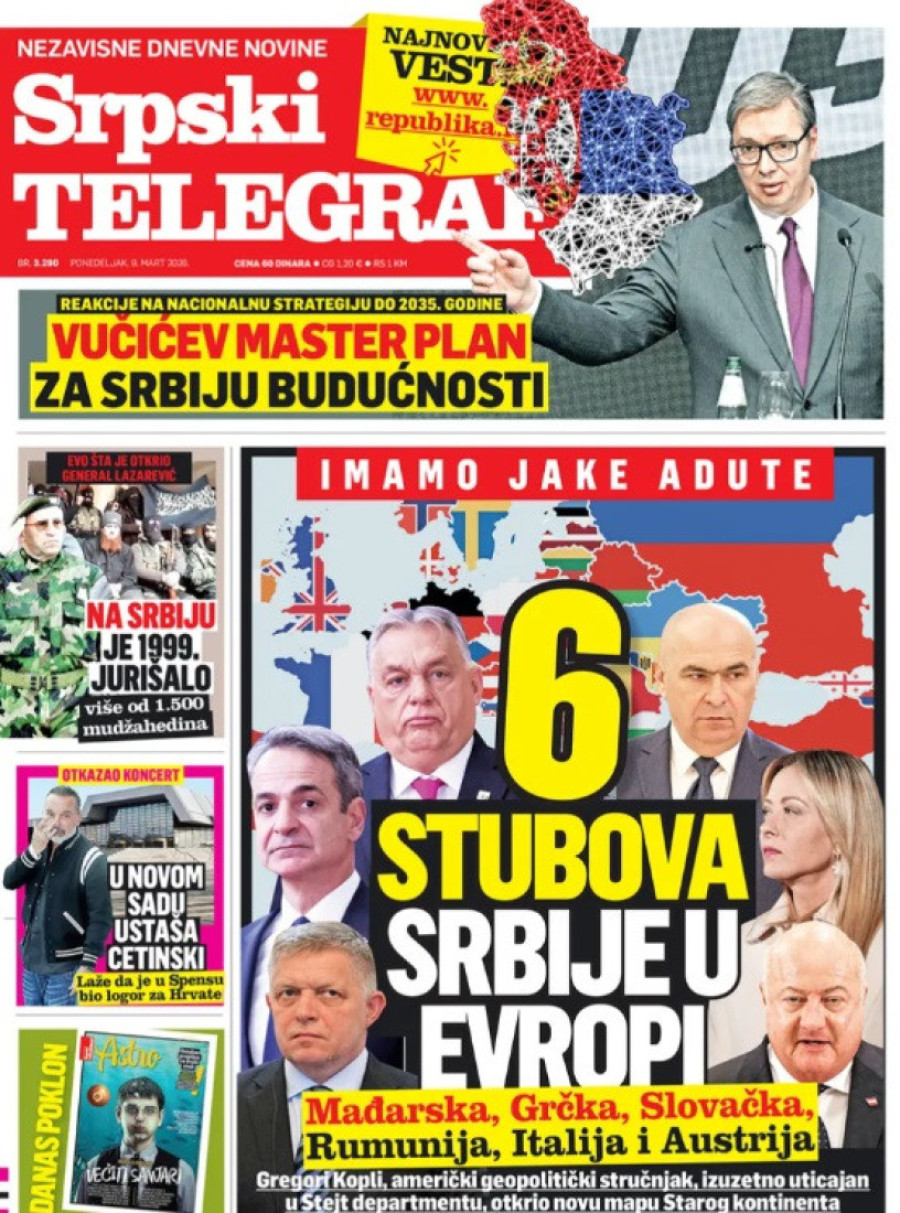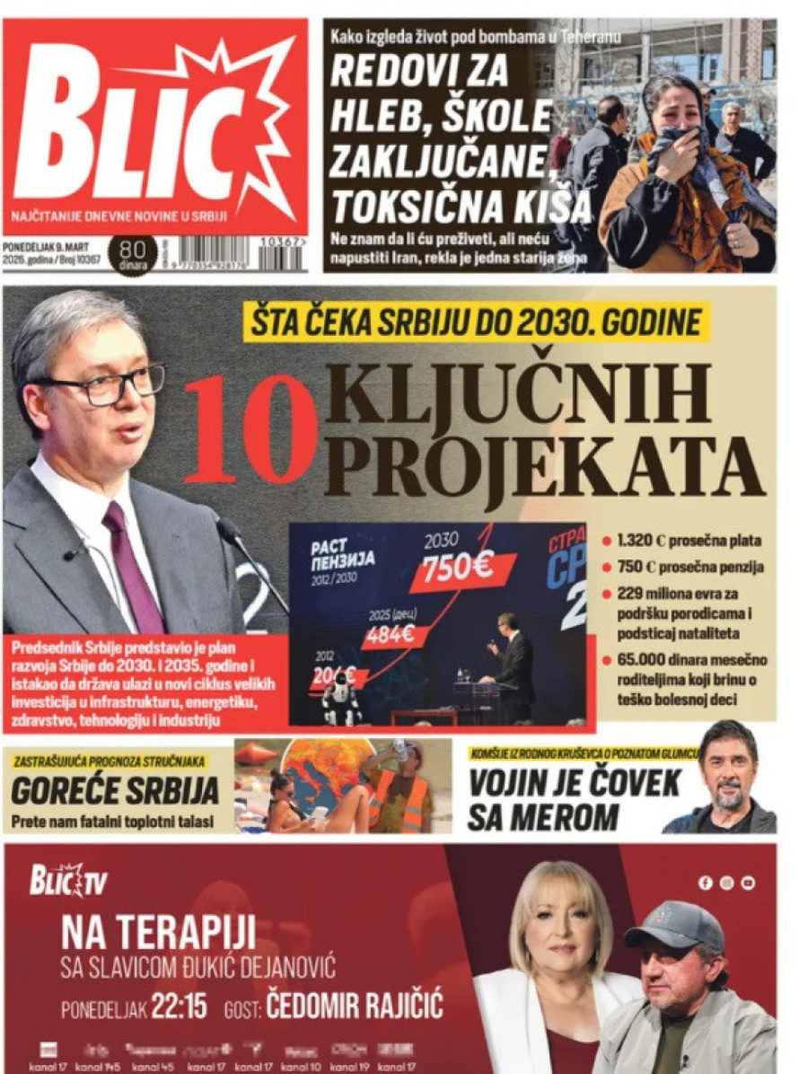 Dnevne novine u Srbiji za ponedeljak, 9. mart 2026. godine, na naslovnim stranama najavljuju brojne aktuelne društveno-političke teme.