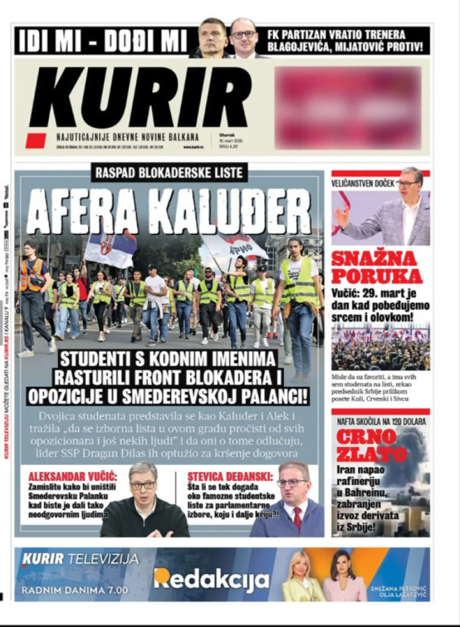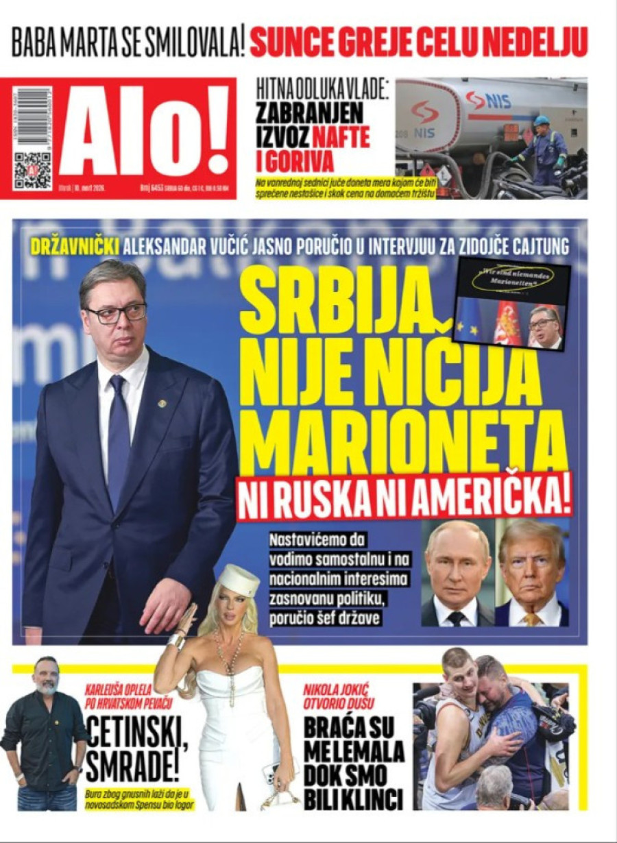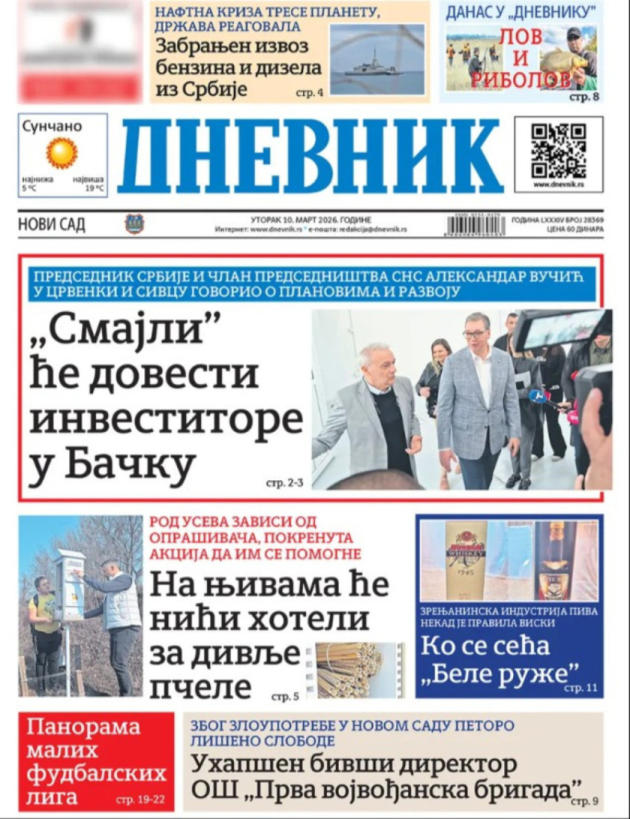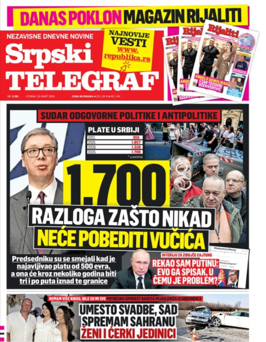 Dnevne novine u Srbiji za utorak, 10. mart 2026. godine, na naslovnim stranama najavljuju brojne aktuelne društveno-političke teme.