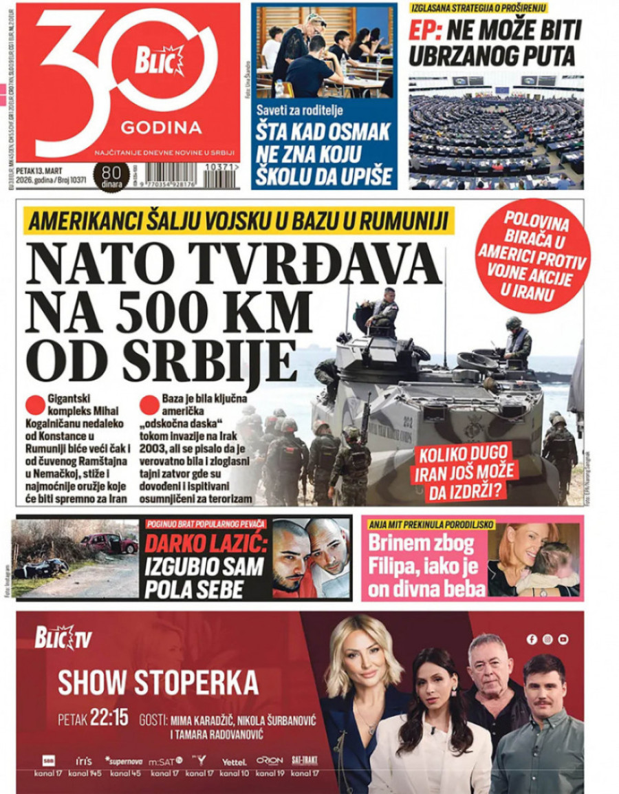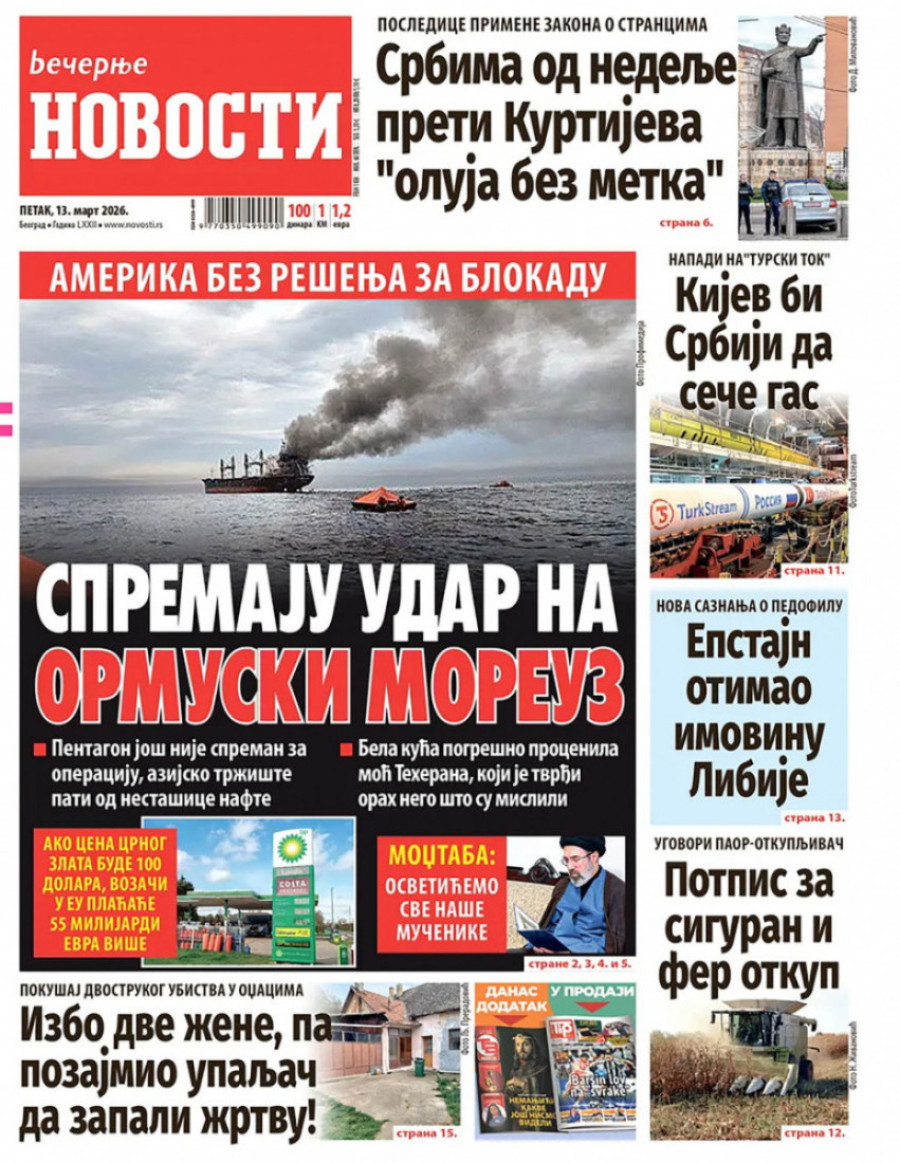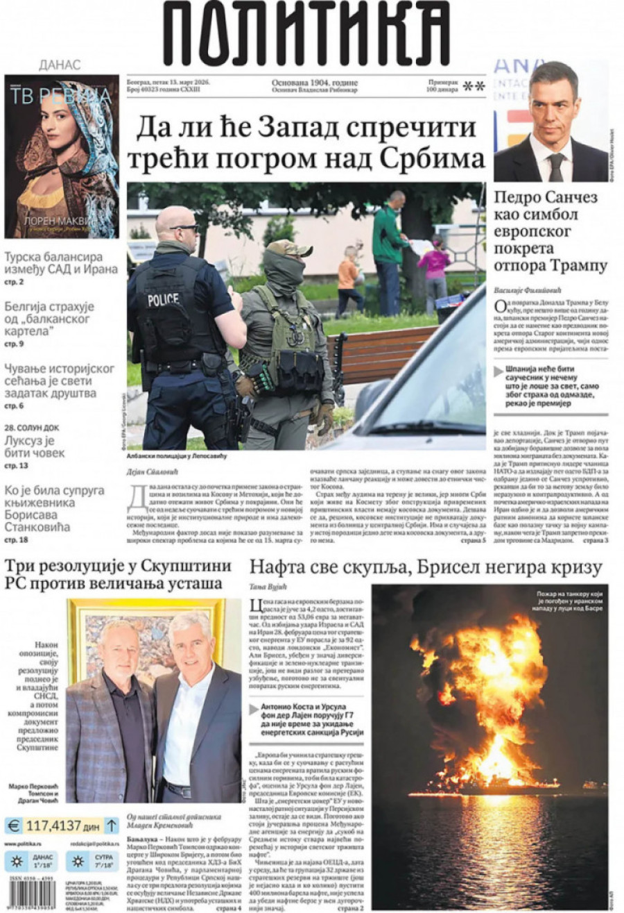 Naslovne strane dnevnih novina: Prelistavanje štampe za 13. mart 2026. godine