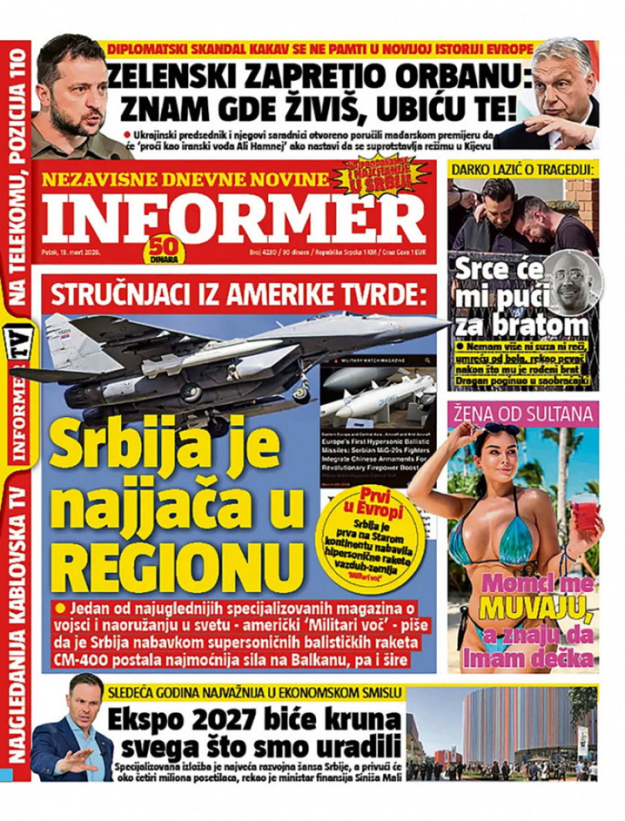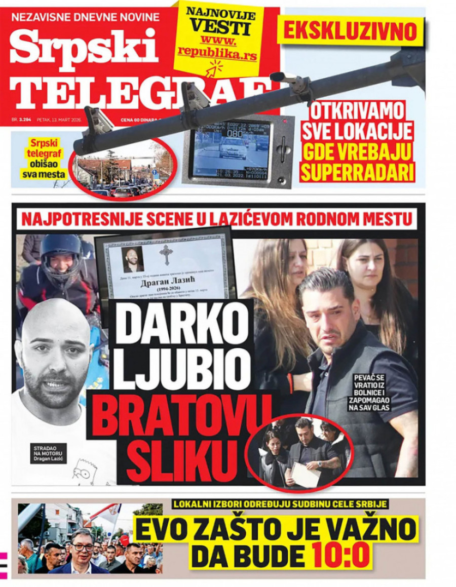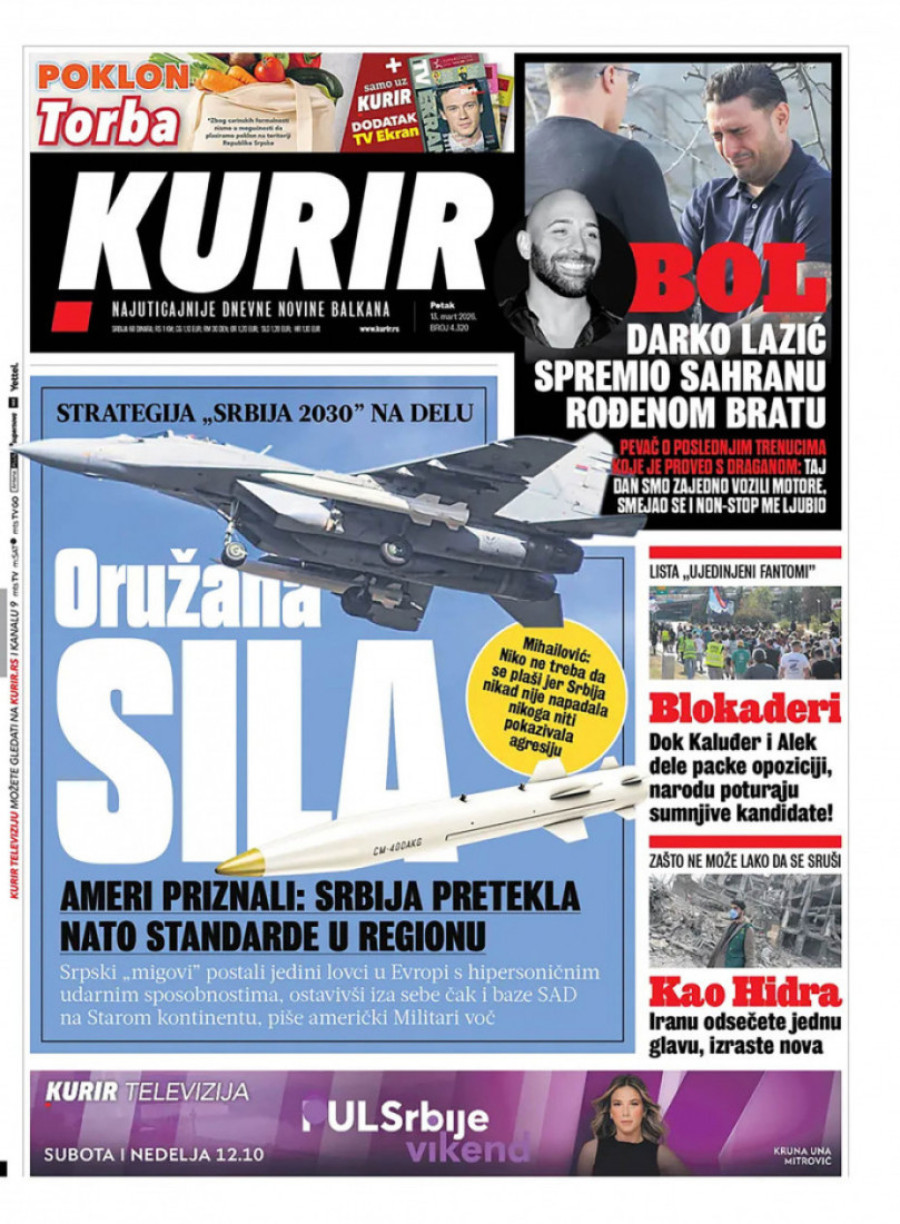 Naslovne strane dnevnih novina: Prelistavanje štampe za 13. mart 2026. godine