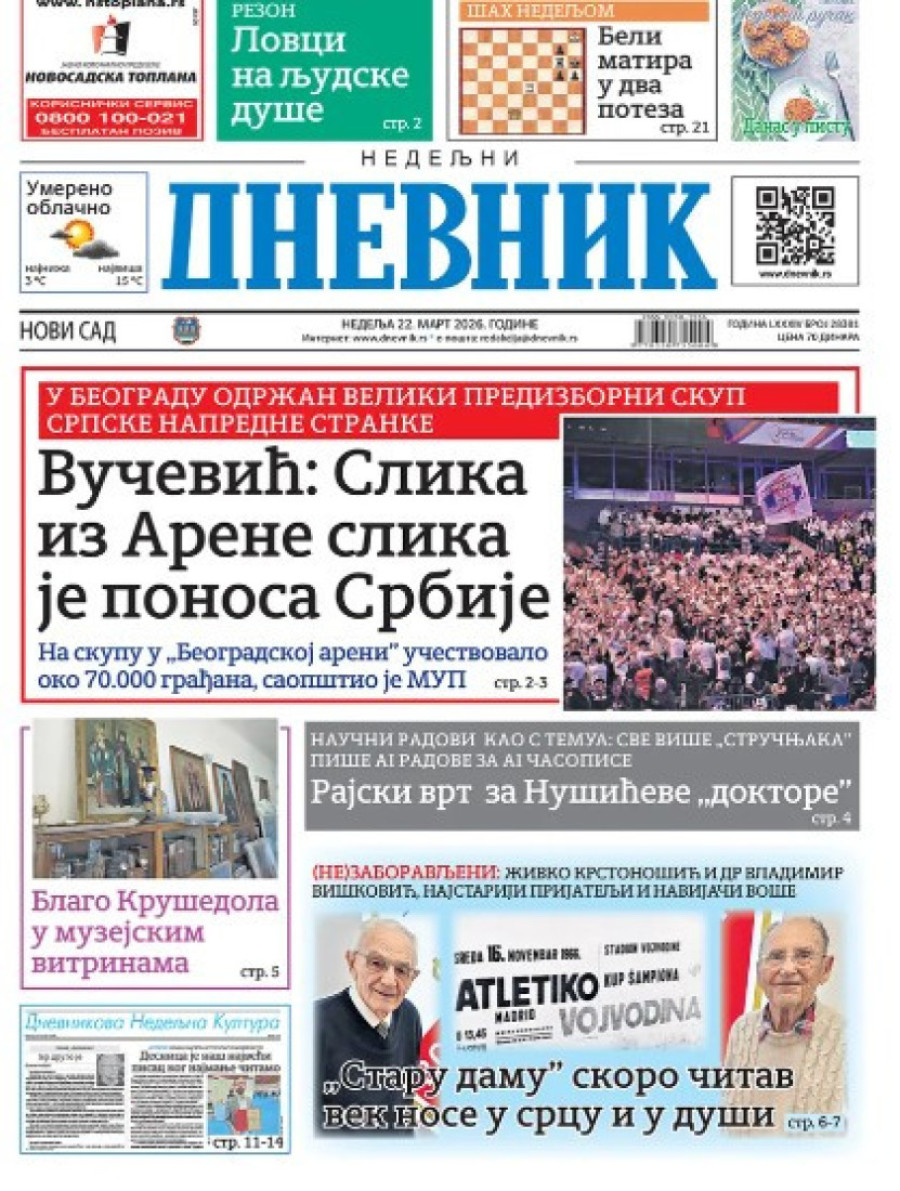 Naslovne strane dnevnih novina: Prelistavanje štampe za 22. mart 2026. godine