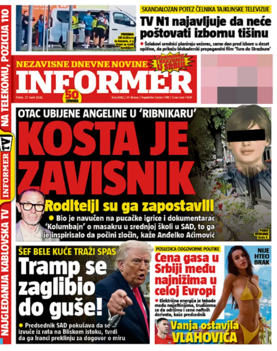 Naslovne strane dnevnih novina: Prelistavanje štampe za 27. mart 2026. godine