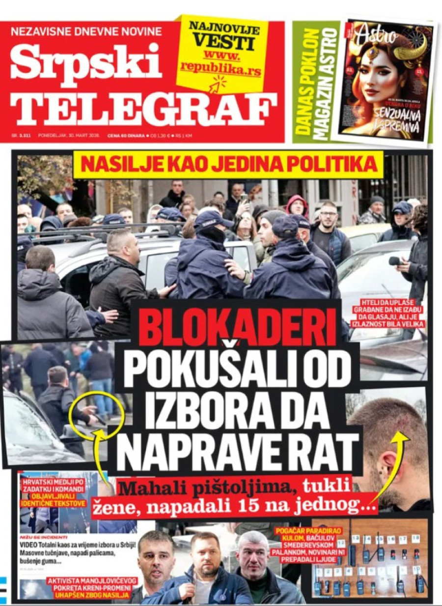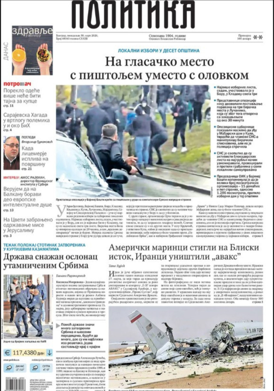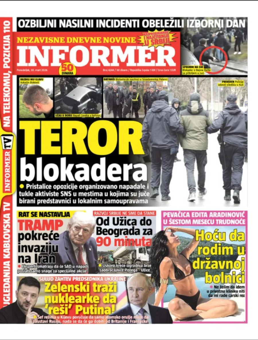 Dnevne novine u Srbiji za ponedeljak 30. mart 2026. godine, na naslovnim stranama najavljuju brojne aktuelne društveno-političke teme.