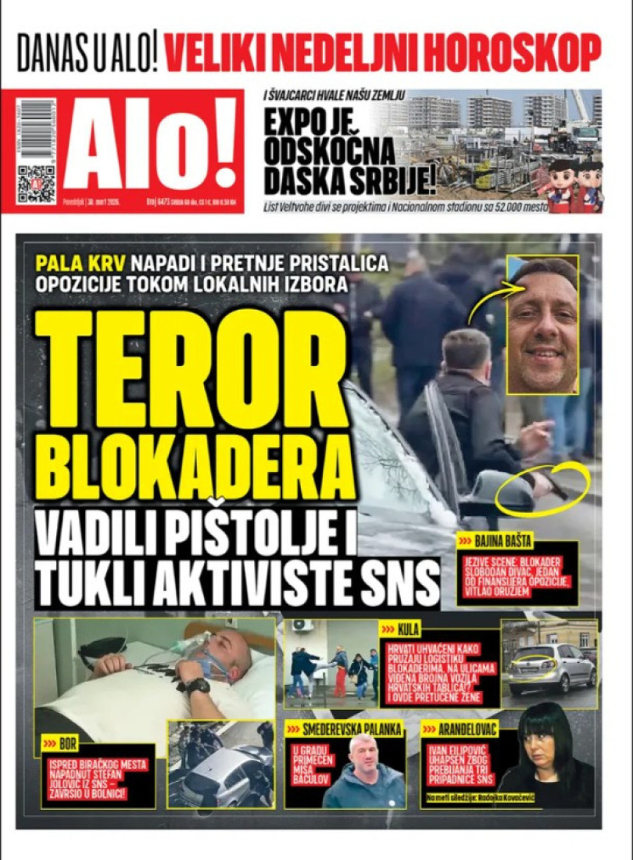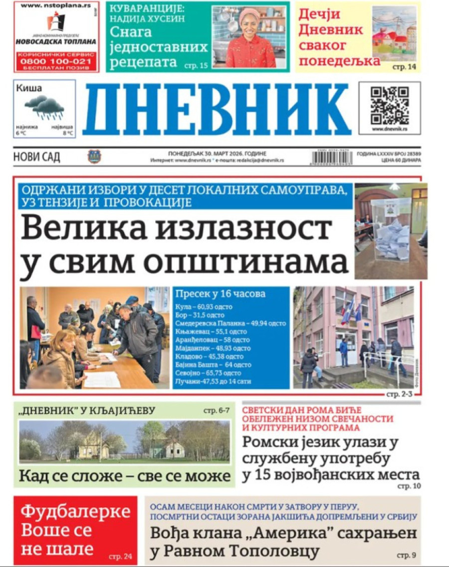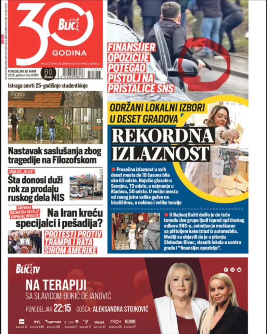 Dnevne novine u Srbiji za ponedeljak 30. mart 2026. godine, na naslovnim stranama najavljuju brojne aktuelne društveno-političke teme.