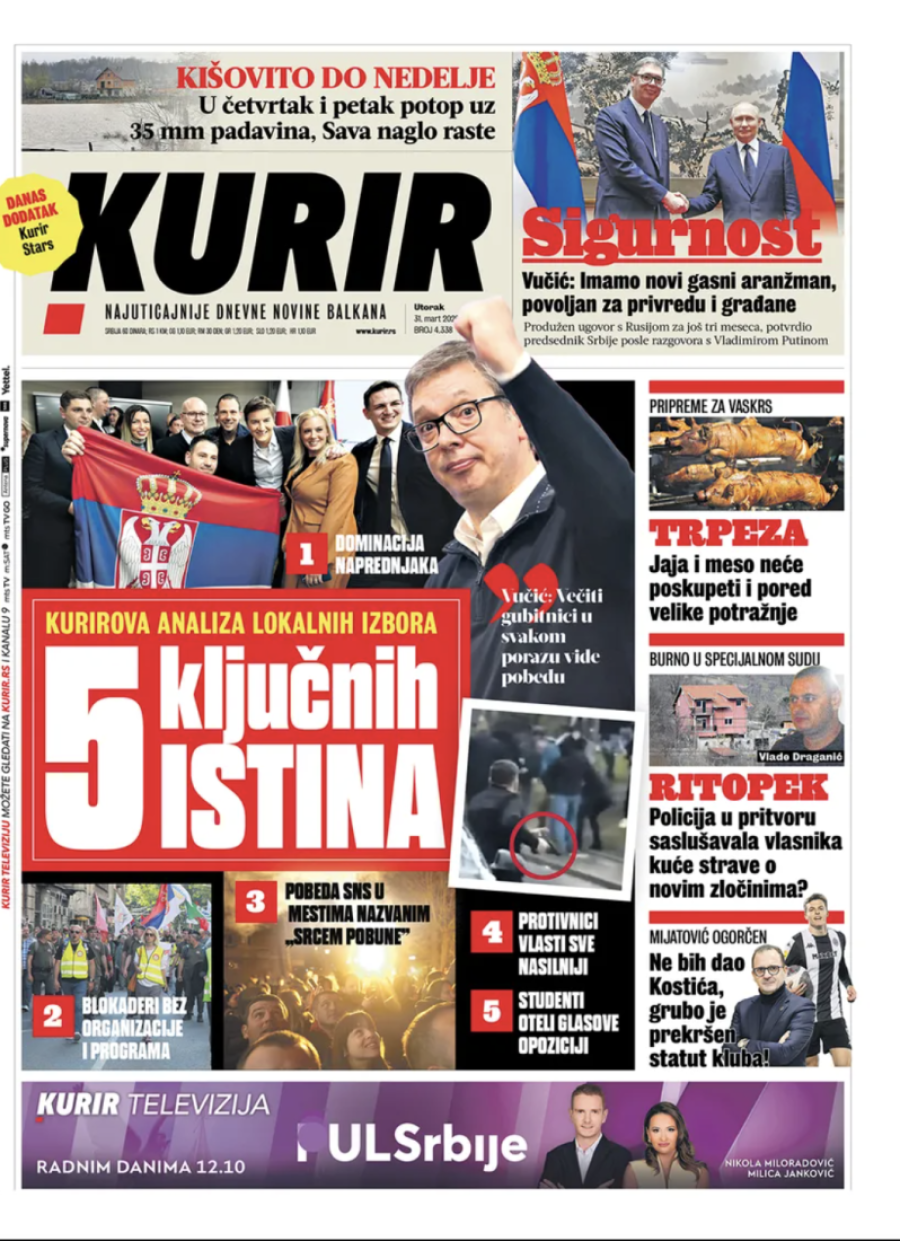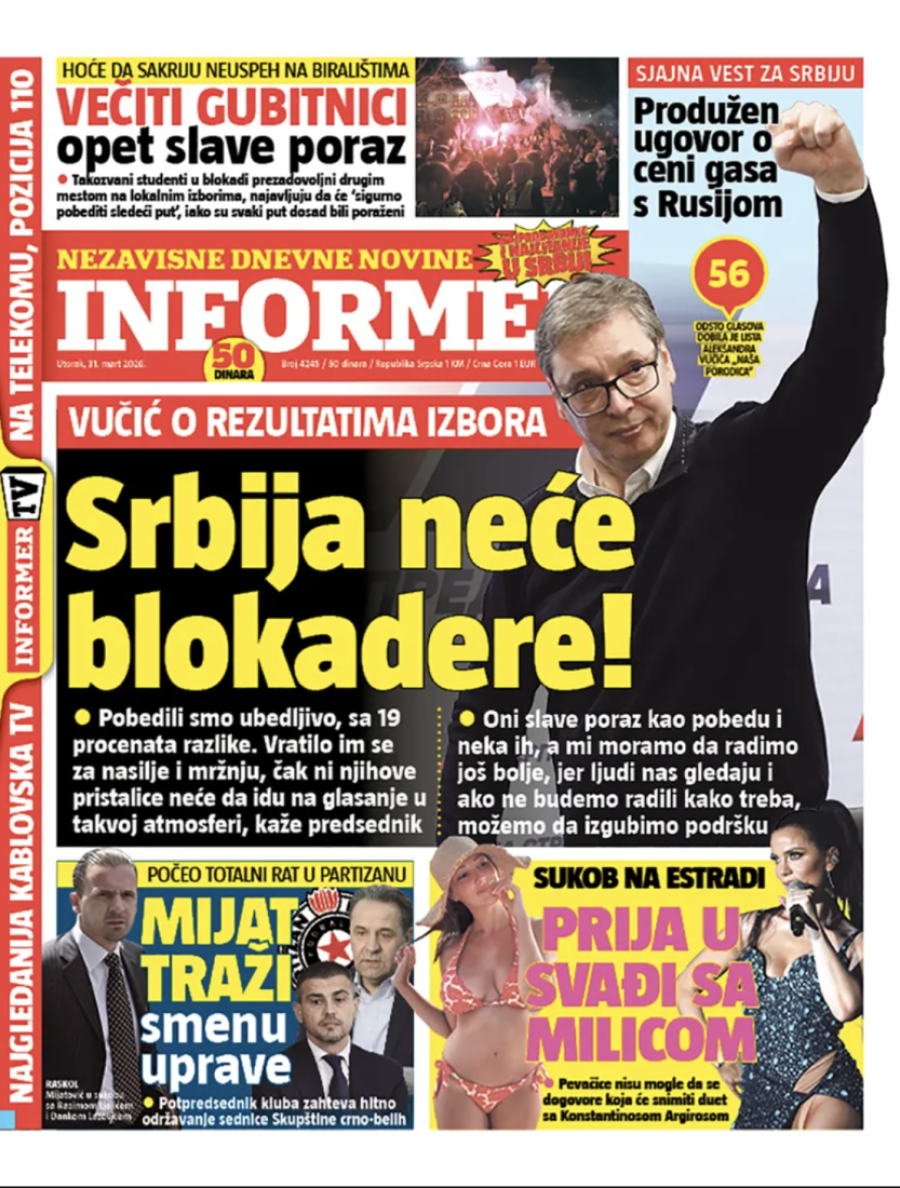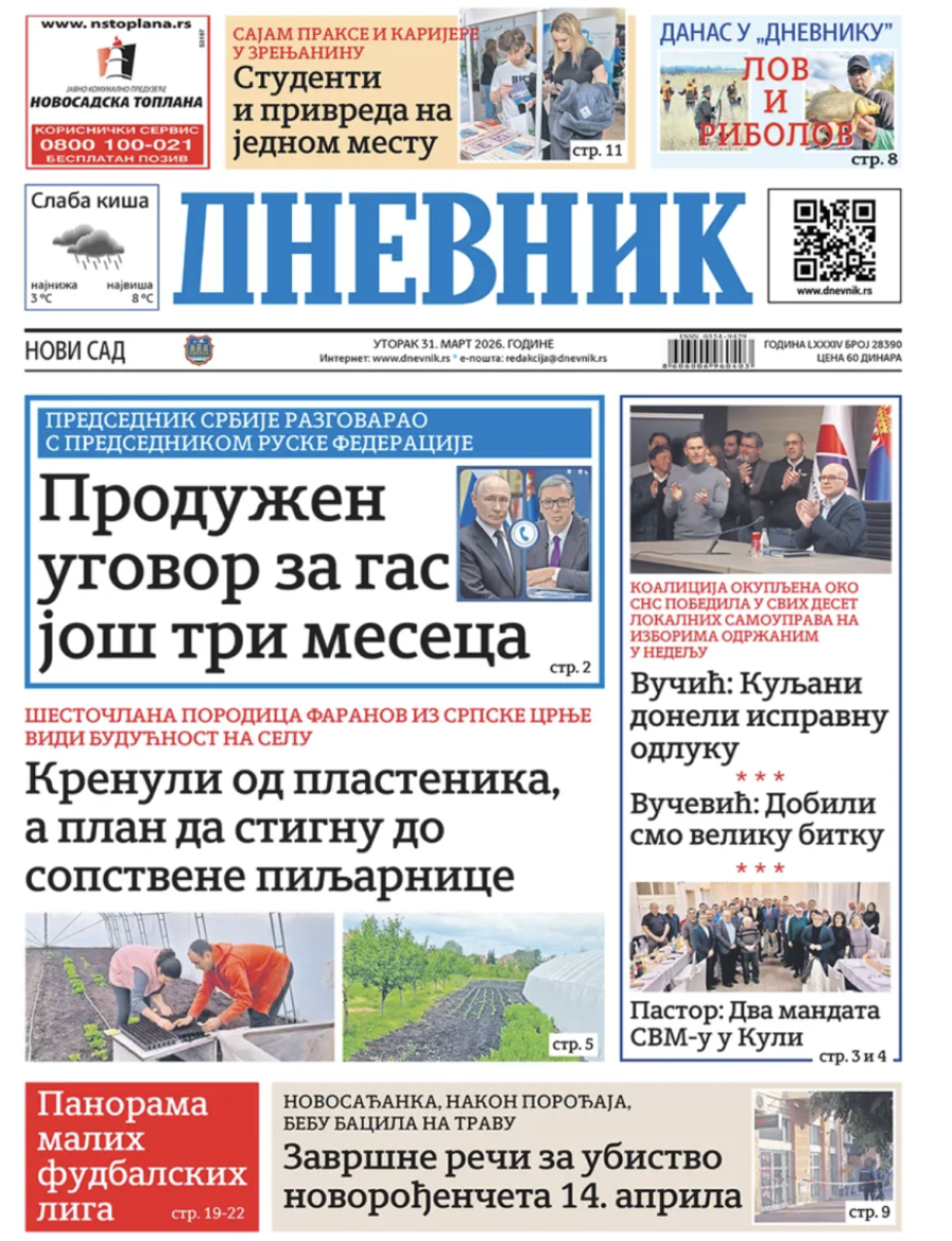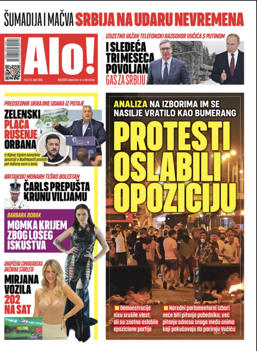 Dnevne novine u Srbiji za utorak 31. mart 2026. godine, na naslovnim stranama najavljuju brojne aktuelne društveno-političke teme.