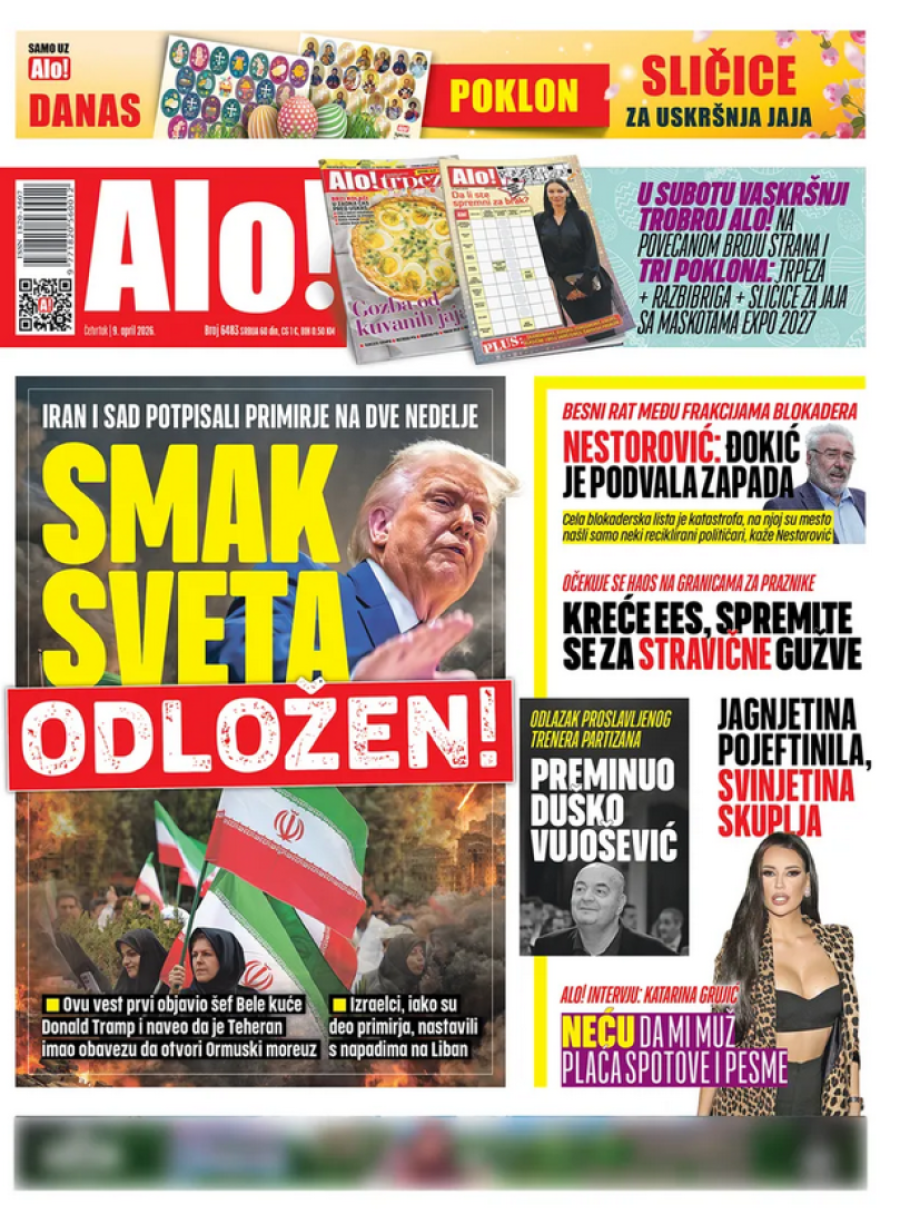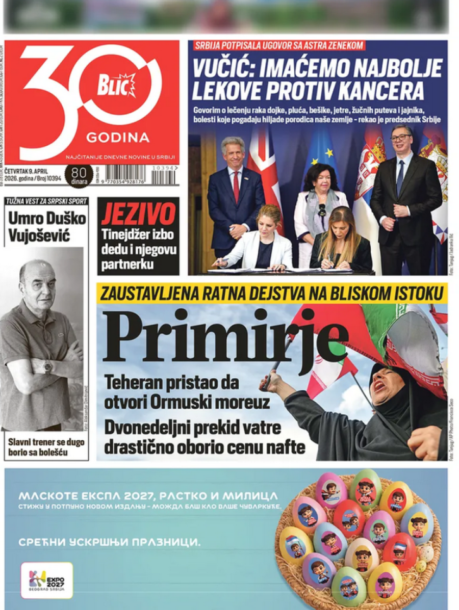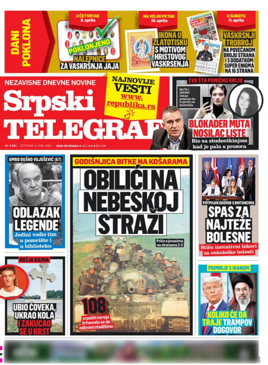 Dnevne novine u Srbiji za četvrtak, 9. april 2026. godine, na naslovnim stranama najavljuju brojne aktuelne društveno-političke teme.