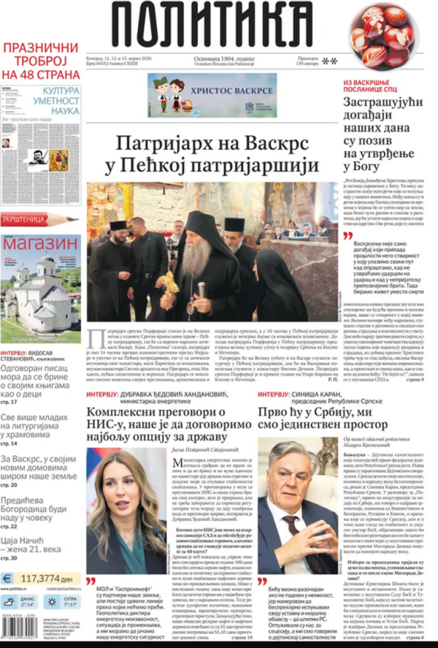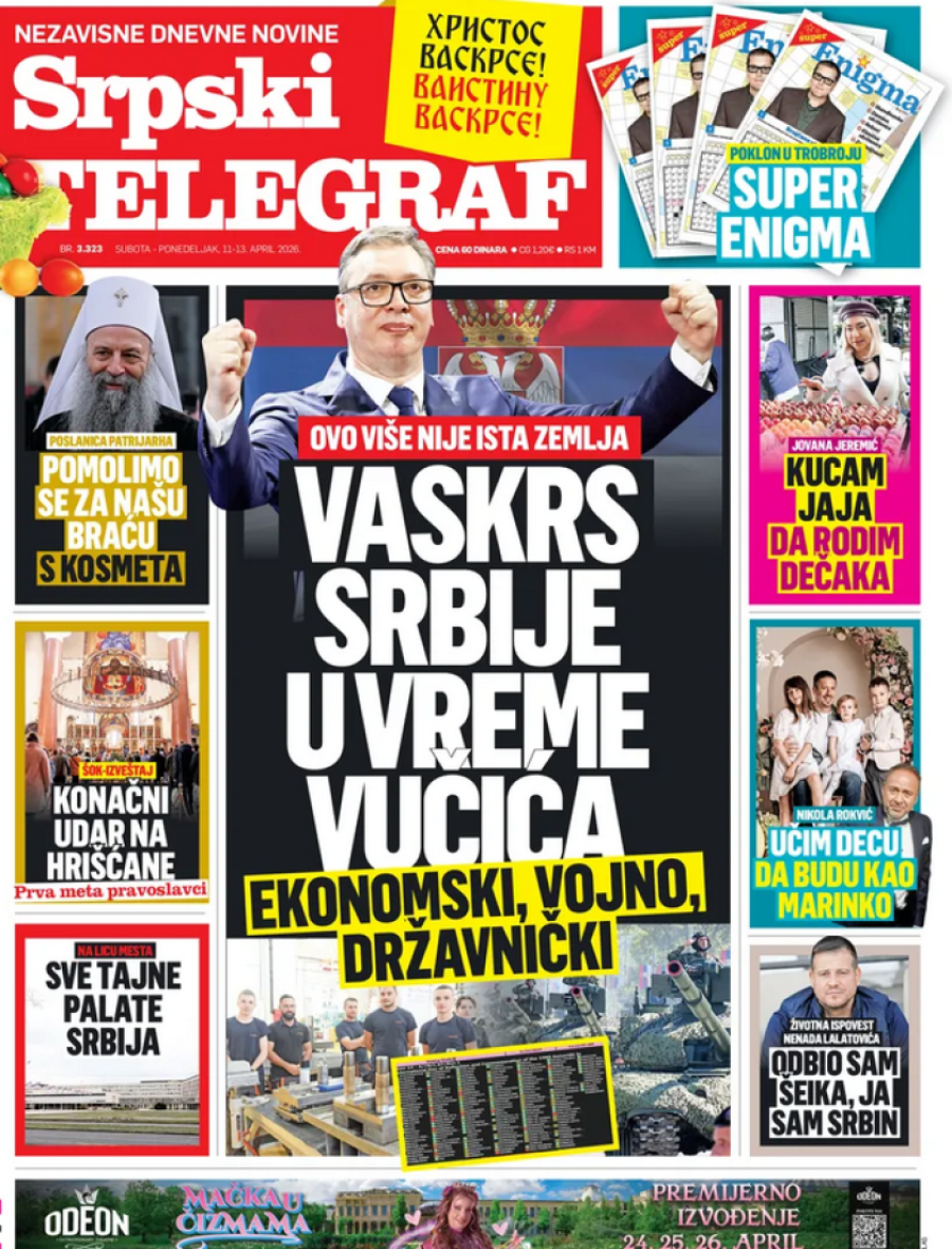 Dnevne novine u Srbiji za 11, 12. i 13. april 2026. godine, na naslovnim stranama najavljuju brojne aktuelne društveno-političke teme.