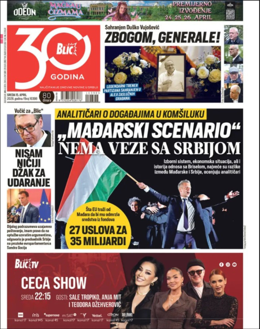 Naslovne strane dnevnih novina: Prelistavanje štampe za 15. april 2026. godine