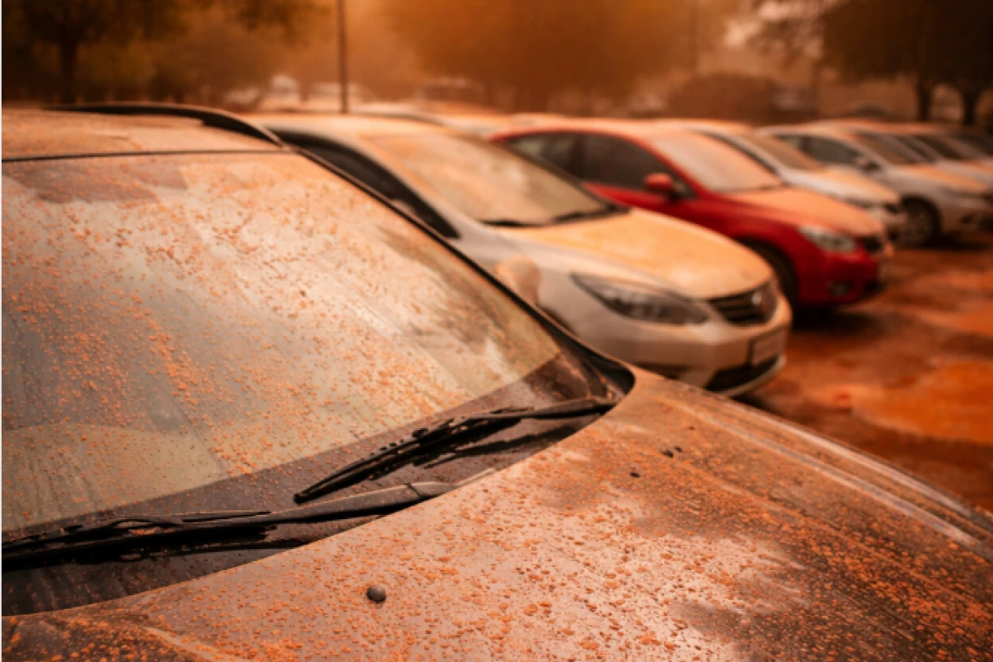 Zbog prisustva oksida gvožđa u prašini, kiša može poprimiti crvenkastu ili narandžastu boju, ostavljajući tragove na automobilima, prozorima i drugim površinama. Upravo taj vizuelni efekat doveo je do naziva „krvava kiša“.