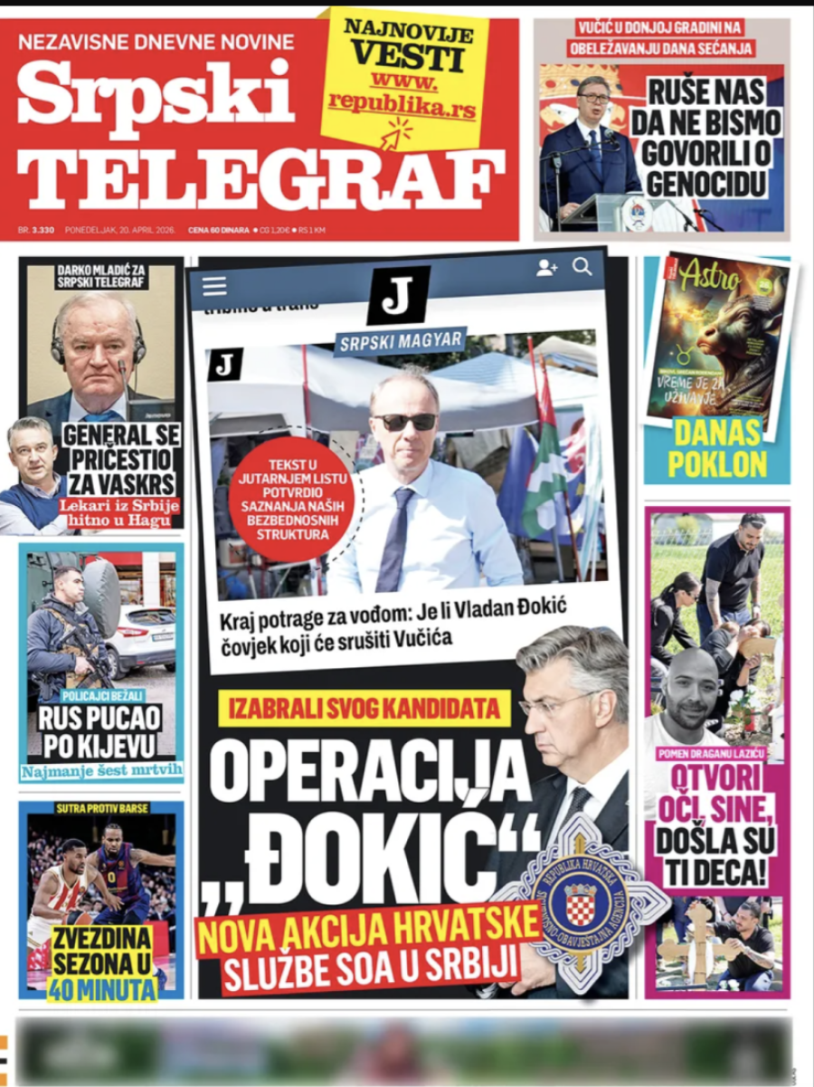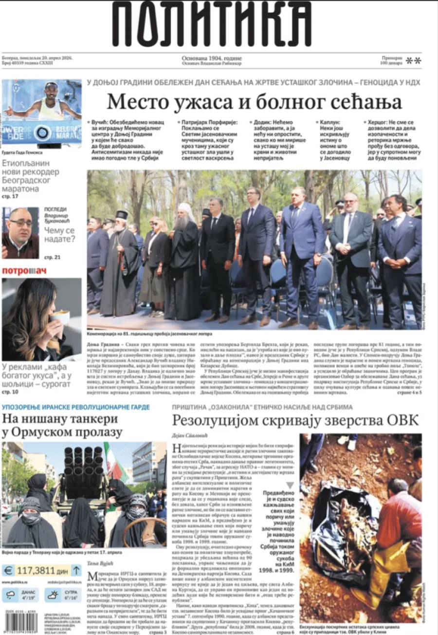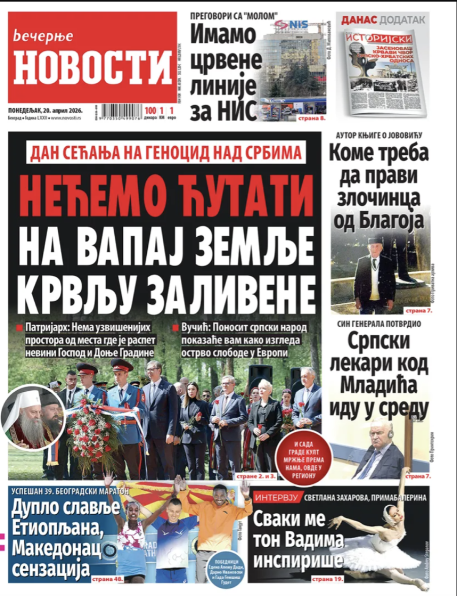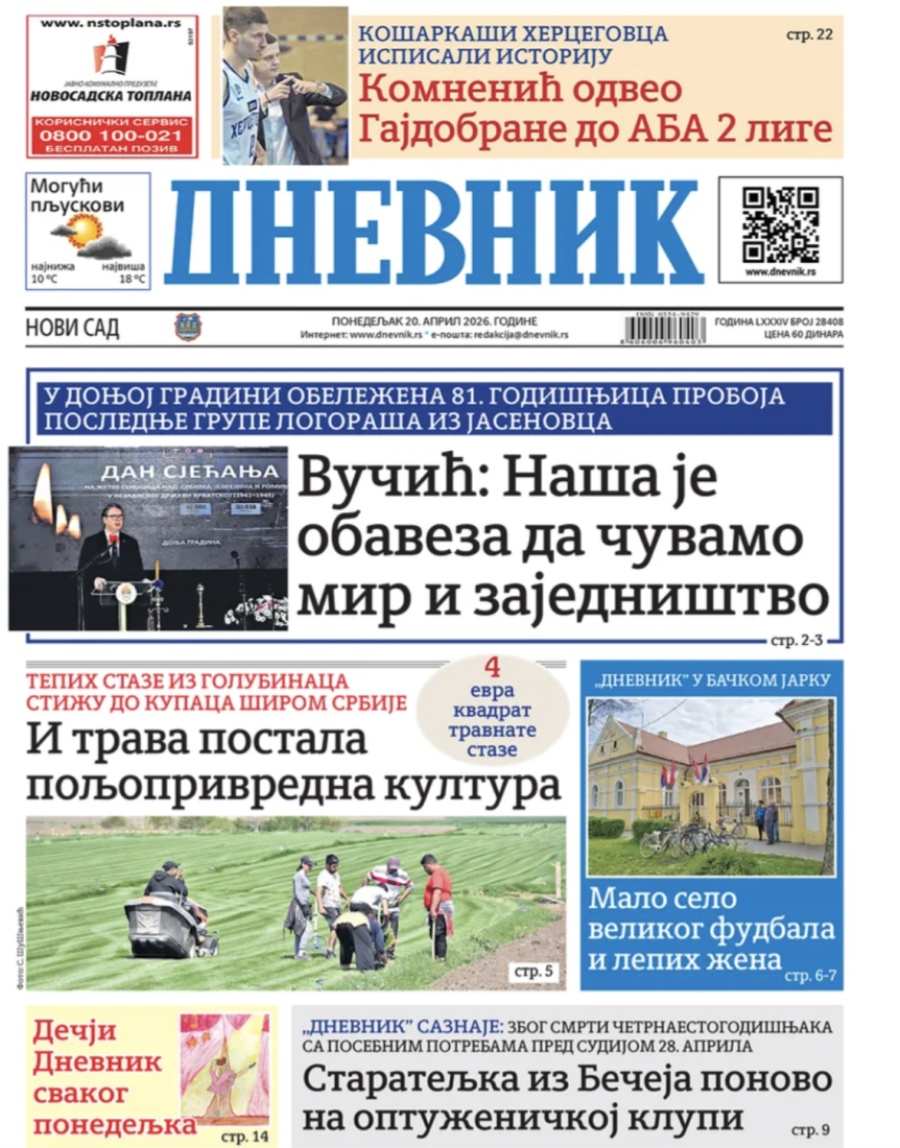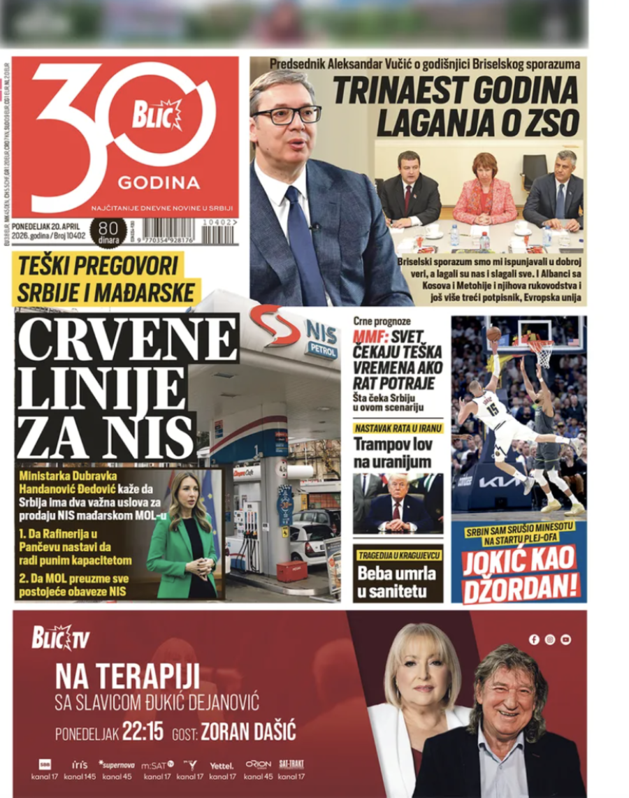 Naslovne strane dnevnih novina: Prelistavanje štampe za 20. april 2026. godine