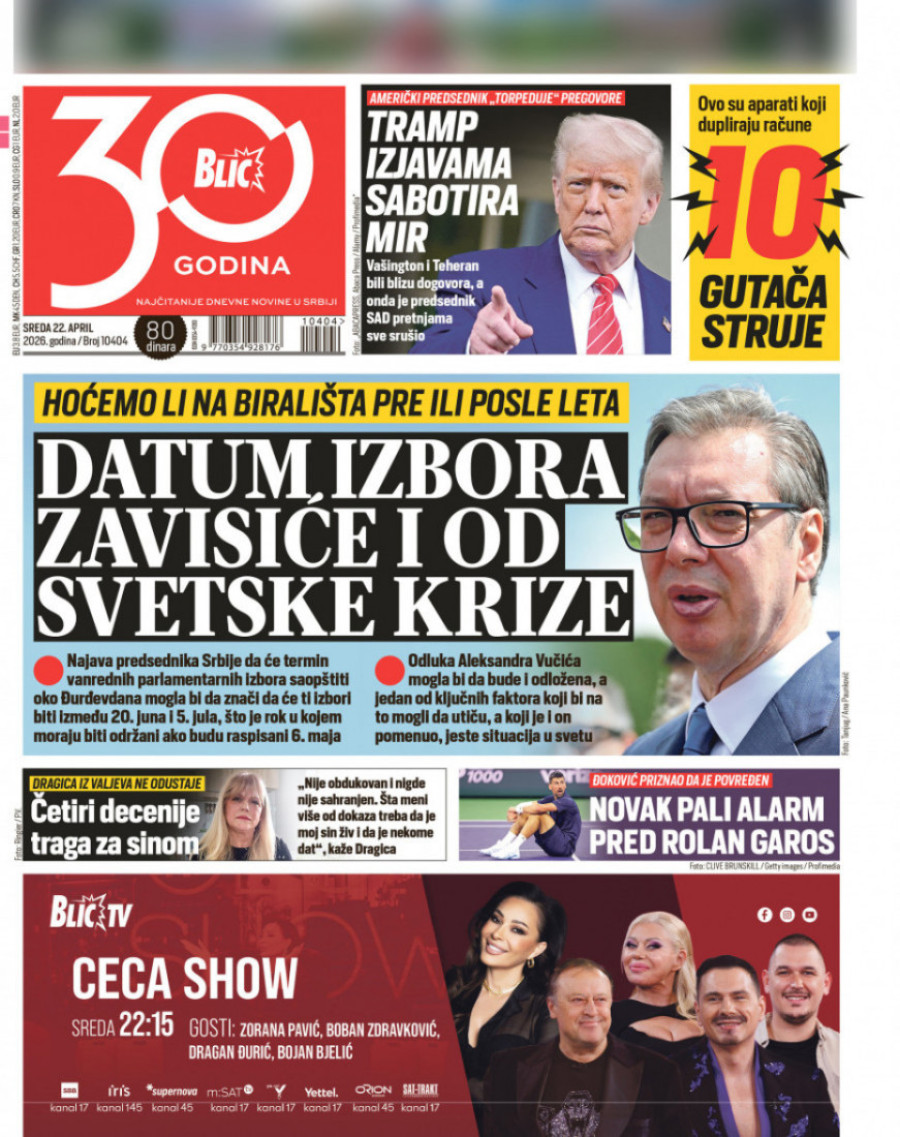 Dnevne novine u Srbiji za utorak, 21. april 2026. godine, na naslovnim stranama najavljuju brojne aktuelne društveno-političke teme