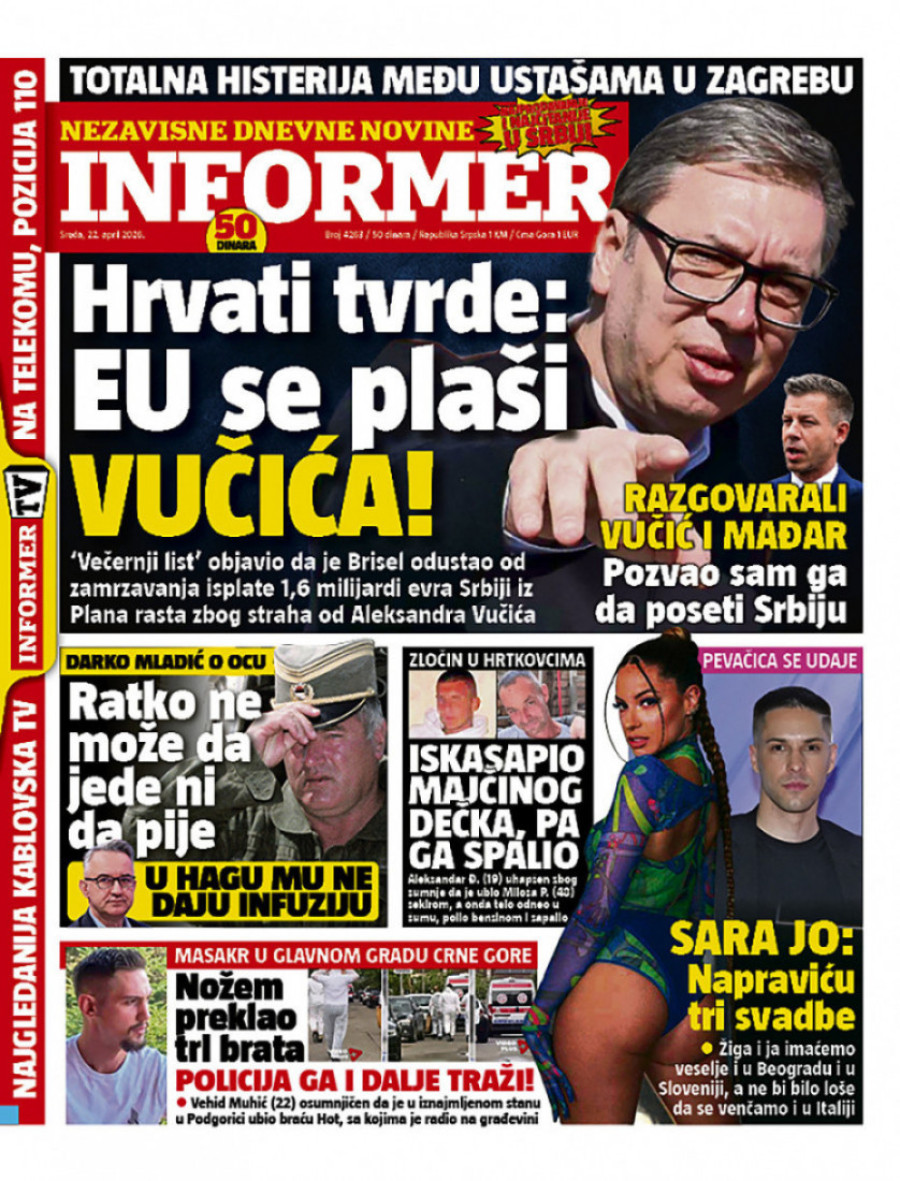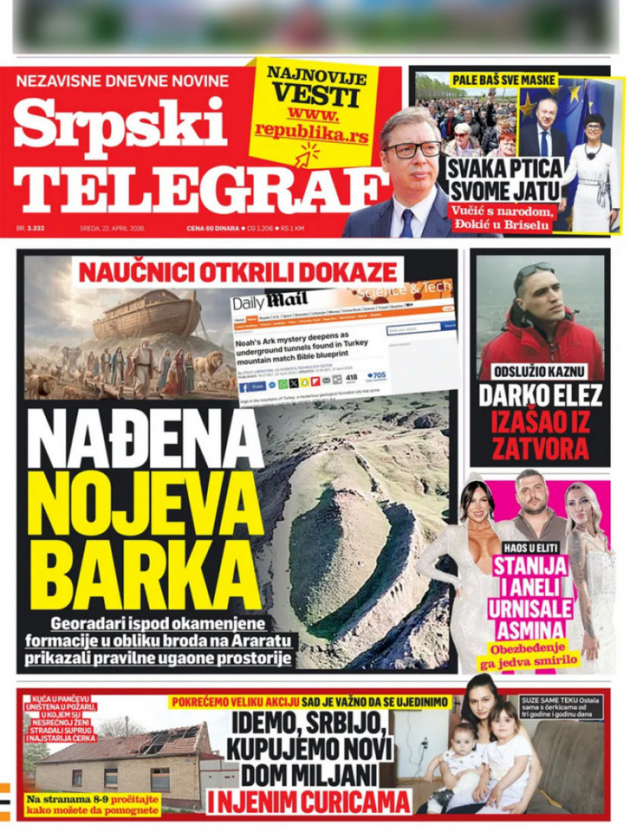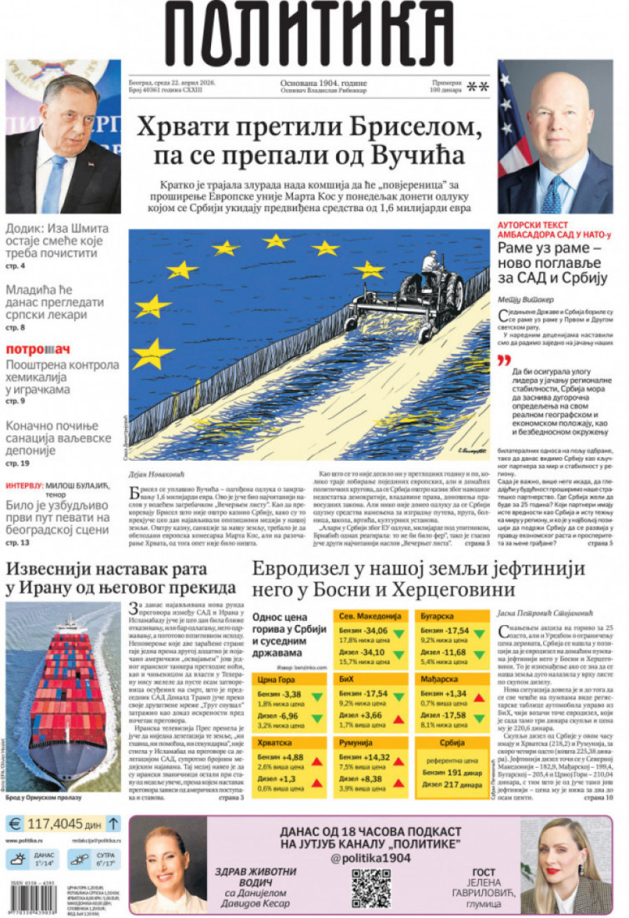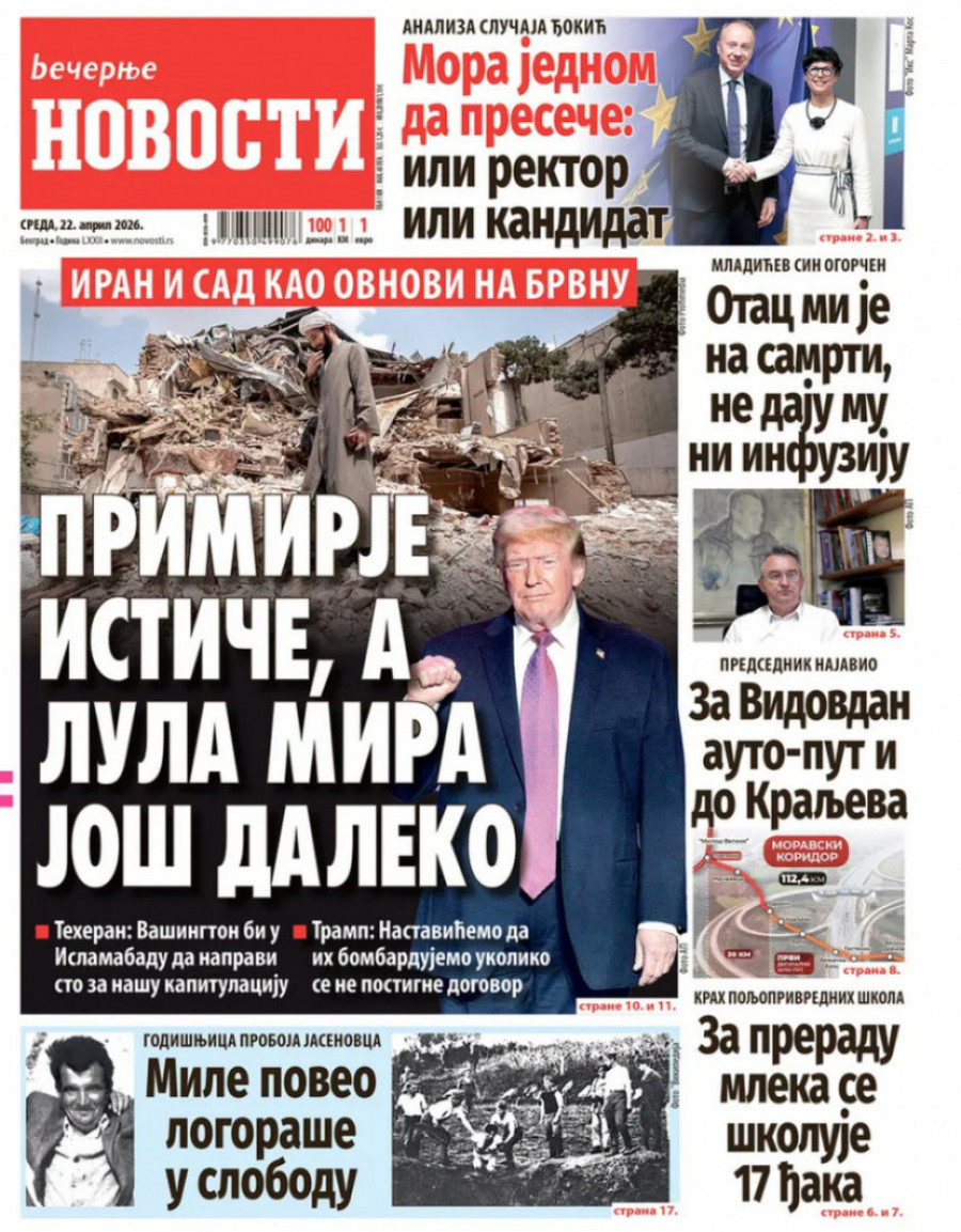 Naslovne strane dnevnih novina: Prelistavanje štampe za 22. april 2026. godine