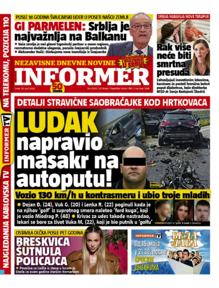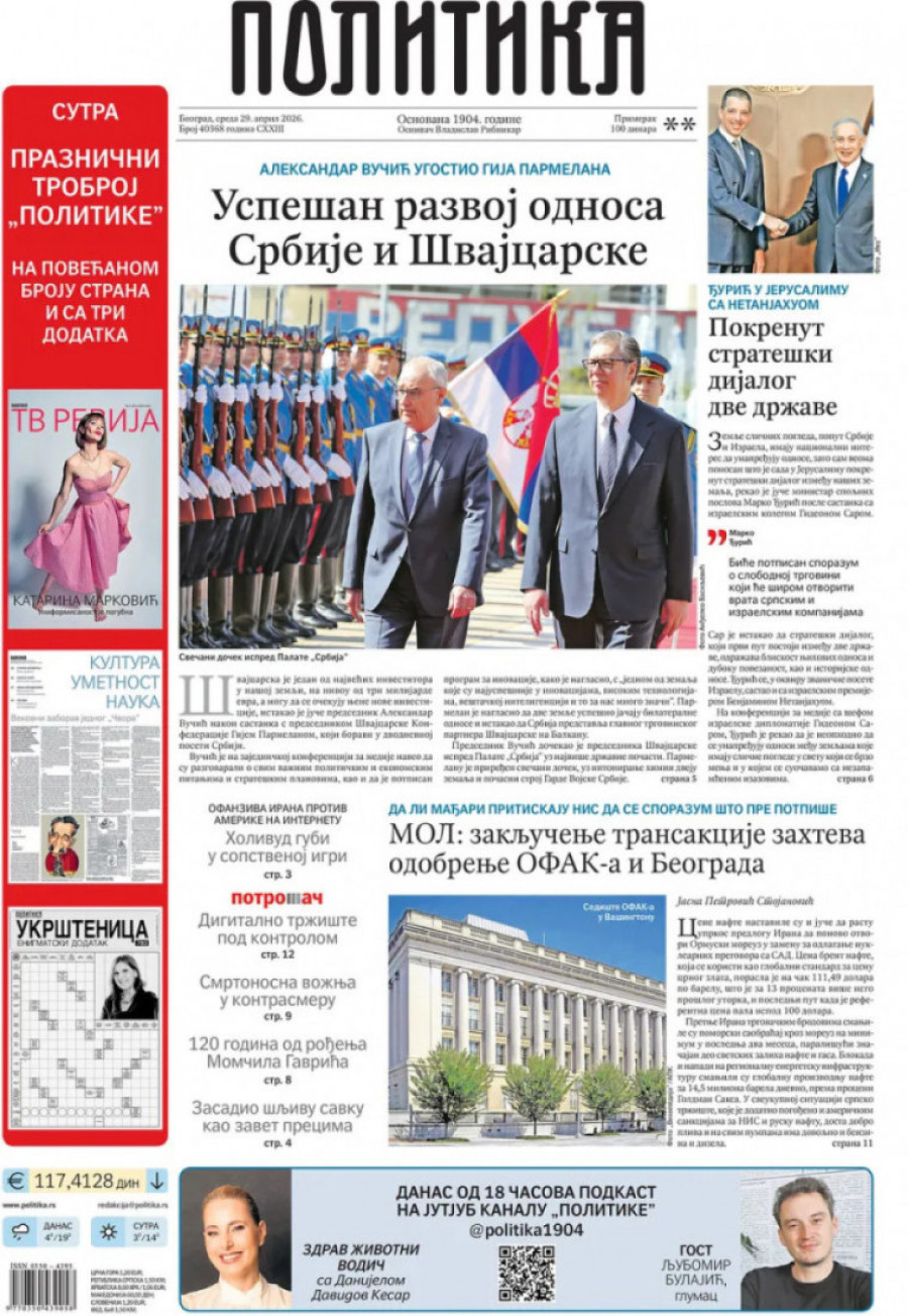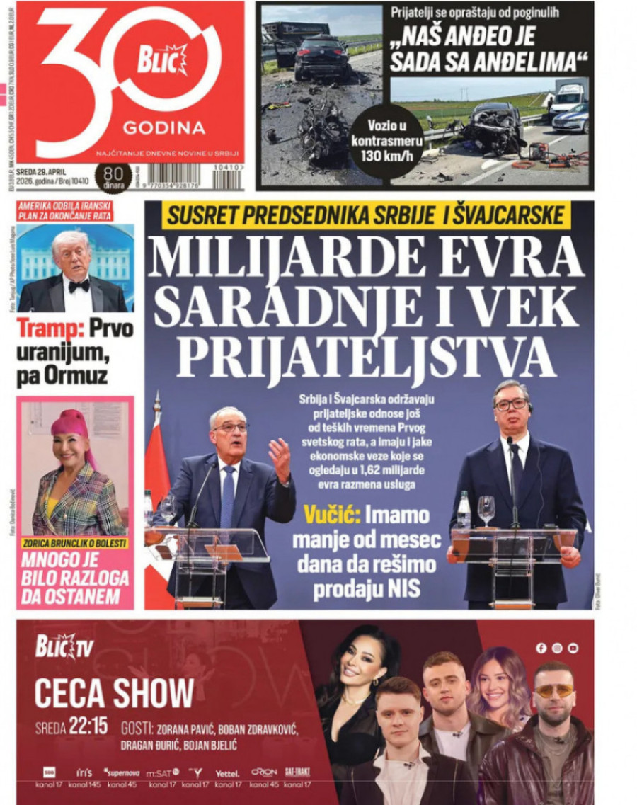 Naslovne strane dnevnih novina: Prelistavanje štampe za 29. april 2026. godine