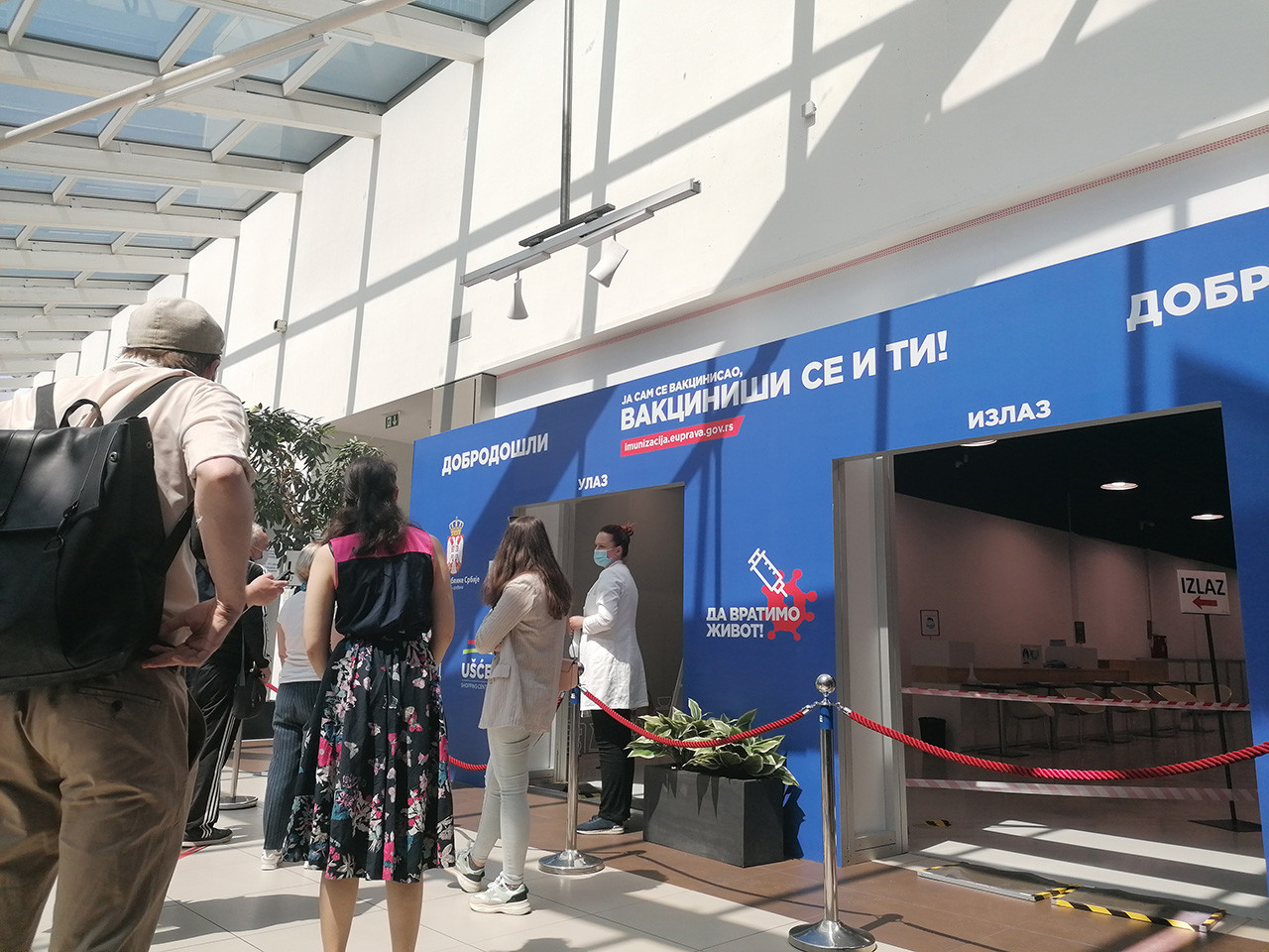Ponedeljak, 12,30 sati. Vakcinacija bez zakazivanja u Tržnom centru „Ušće“ traje četvrti dan. Za razliku od prvog i drugog, sada nema gužvi, nema vaučera, u vrednosti od 3.000 i 5.000 dinara, nema novinara, a ni puno ljudi na tom trećem spratu, gde se nalazi vakcinalni punkt. Iako smo se nadali da prazan plato ispred „Ušća“ nije pokazatelj stanja ispred punkta za vakcinaciju, ispostavilo se da, ipak, jeste.