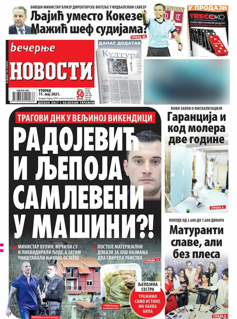 Dnevne novine u Srbiji za utorak. 11. maj 2021. godine, na naslovnim stranama najavljuju brojne aktuelne društveno-političke teme i donose ekskluzivne priče.