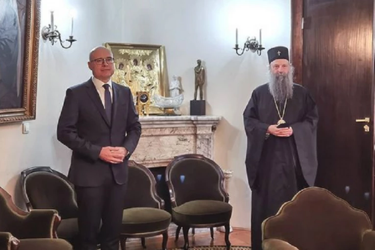 24SEDAM NOVI SAD Sastanak u Patrijaršijskom dvoru: Patrijarh Porfirije primio gradonačelnika Novog Sada Miloša Vučevića (FOTO)