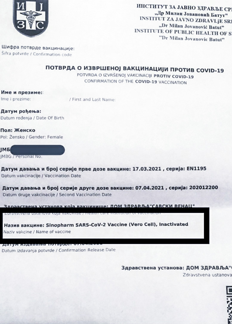 -Obzirom da mi je bilo veoma loše ćerka je tražila da vidi papir koji sam dobila posle revakcinacije. Tada smo shvatile da je došlo do greške i da sam revakcinisana Sinofarm vakcinom – objašnjava Ksenija dalje. – Dodatno me opterećuje jer sam ja asmatičar i ne znam kakvo će ovo posledice ostaviti po moje zdravlje. Ponadali smo se da je možda birokratska greška u pitanju, međutim, i na sajtu Instituta za javno zdravlje piše ista stvar.