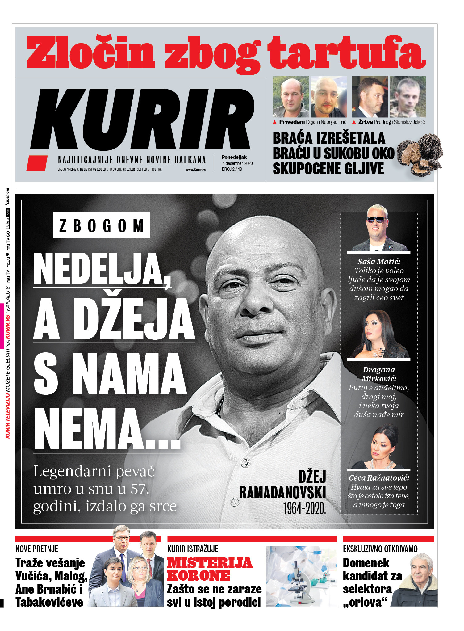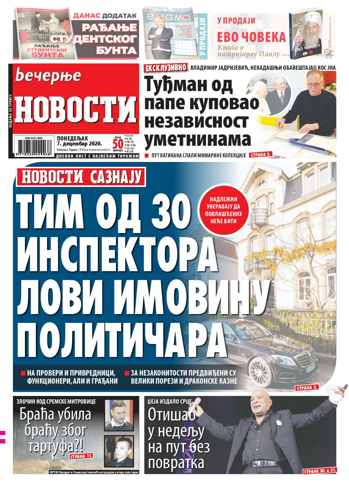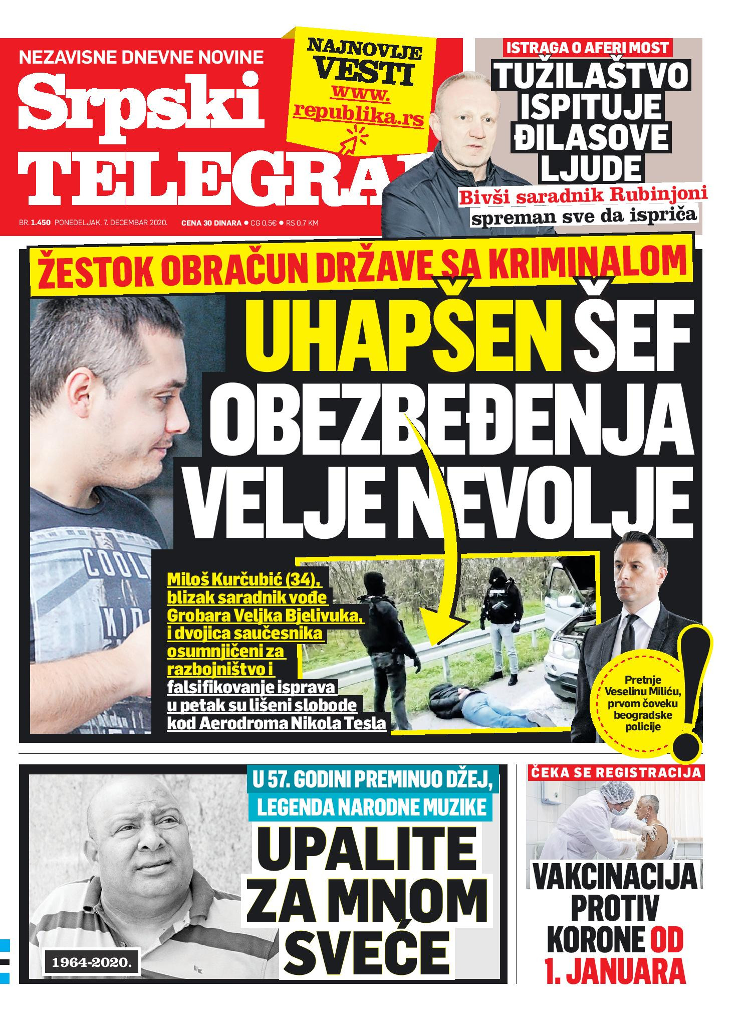 Dnevne novine u Srbiji za nedelju, 6. decembar 2020. godine, na naslovnim stranama pišu o brojnim aktuelnim društveno-političkim temama i donose brojne ekskluzivne priče.