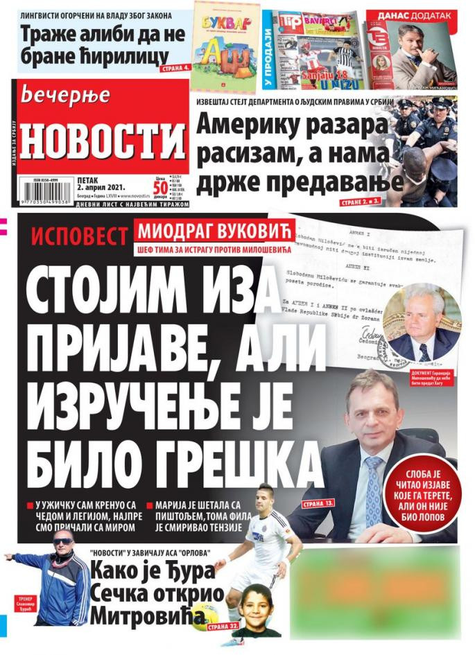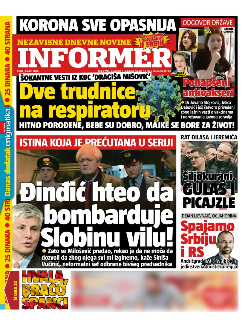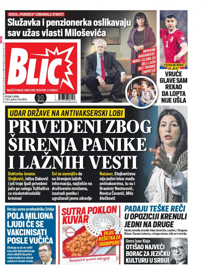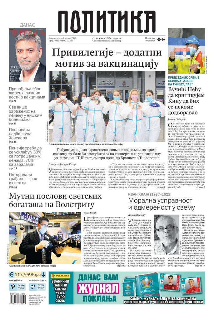Dnevne novine u Srbiji za petak, 2. april 2021. godine, na naslovnim stranama najavljuju brojne aktuelne društveno-političke teme i donose ekskluzivne priče.