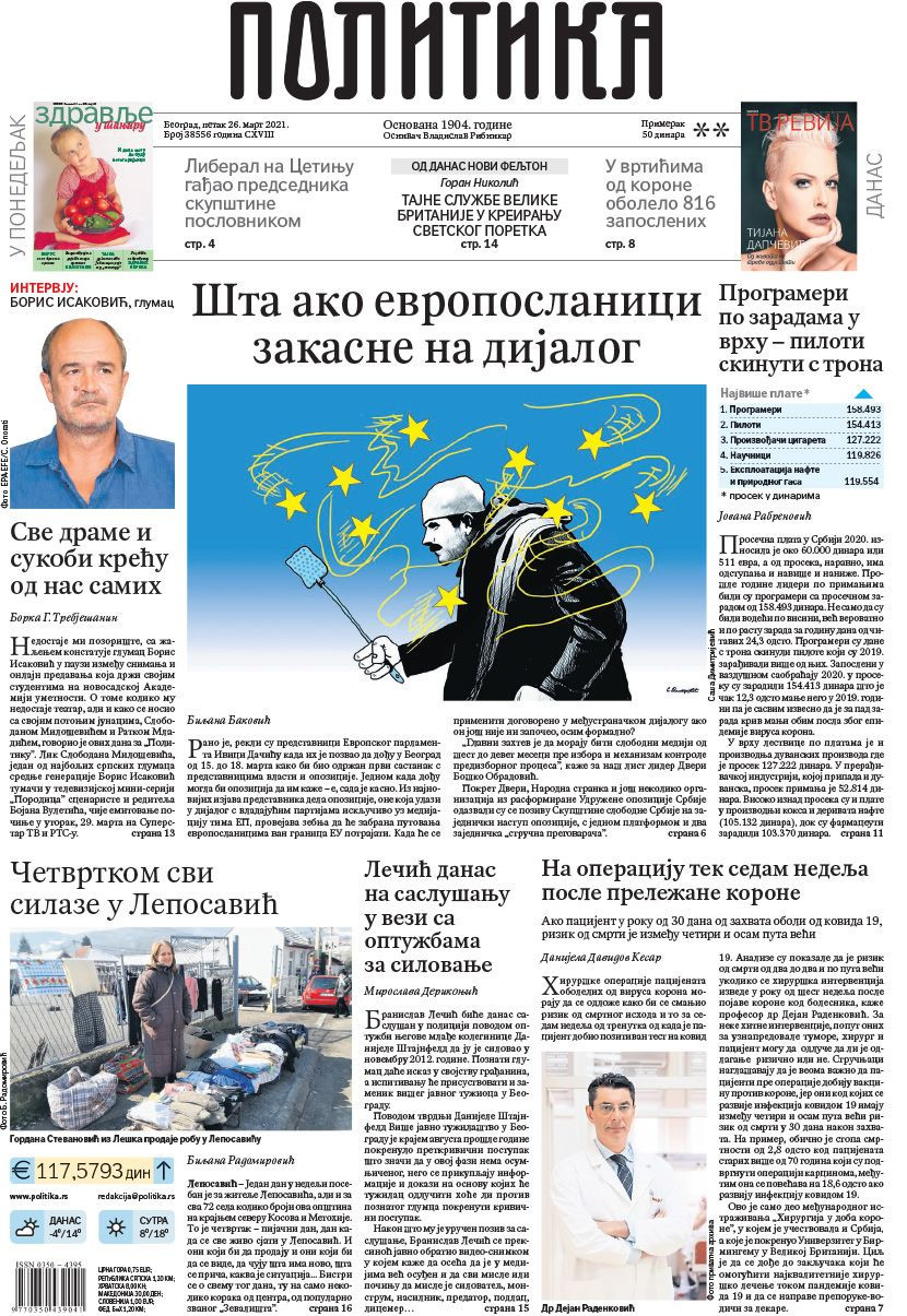 Prelistavanje štampe za petak 26. mart 2021. godine