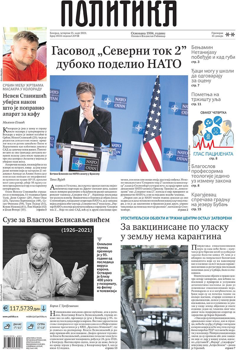 Prelistavanje štampe za četvrtak, 25. mart 2021. godine