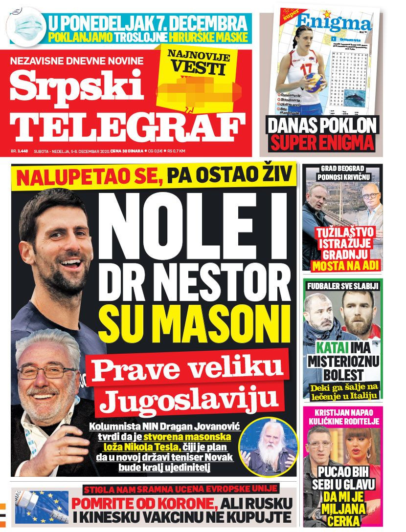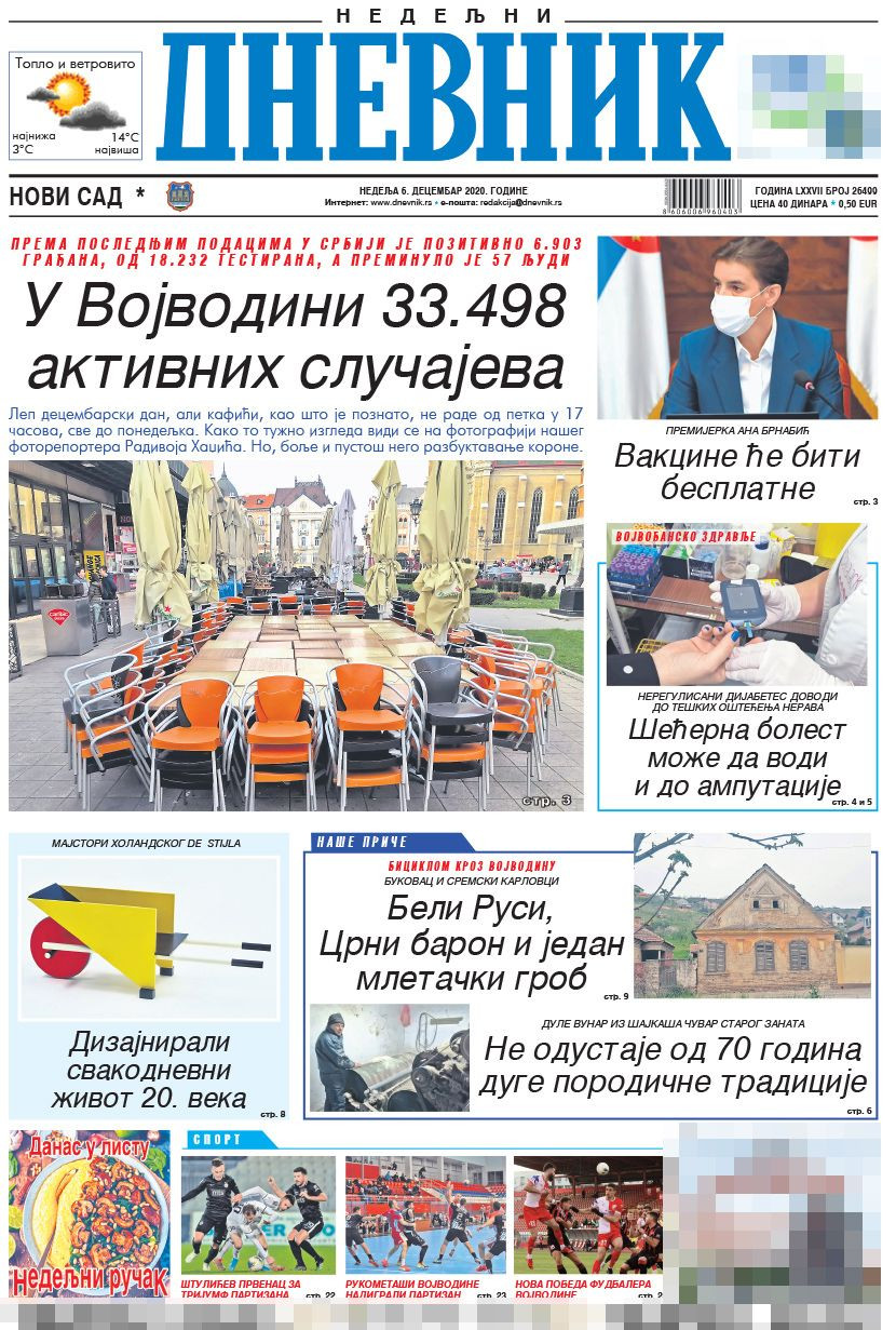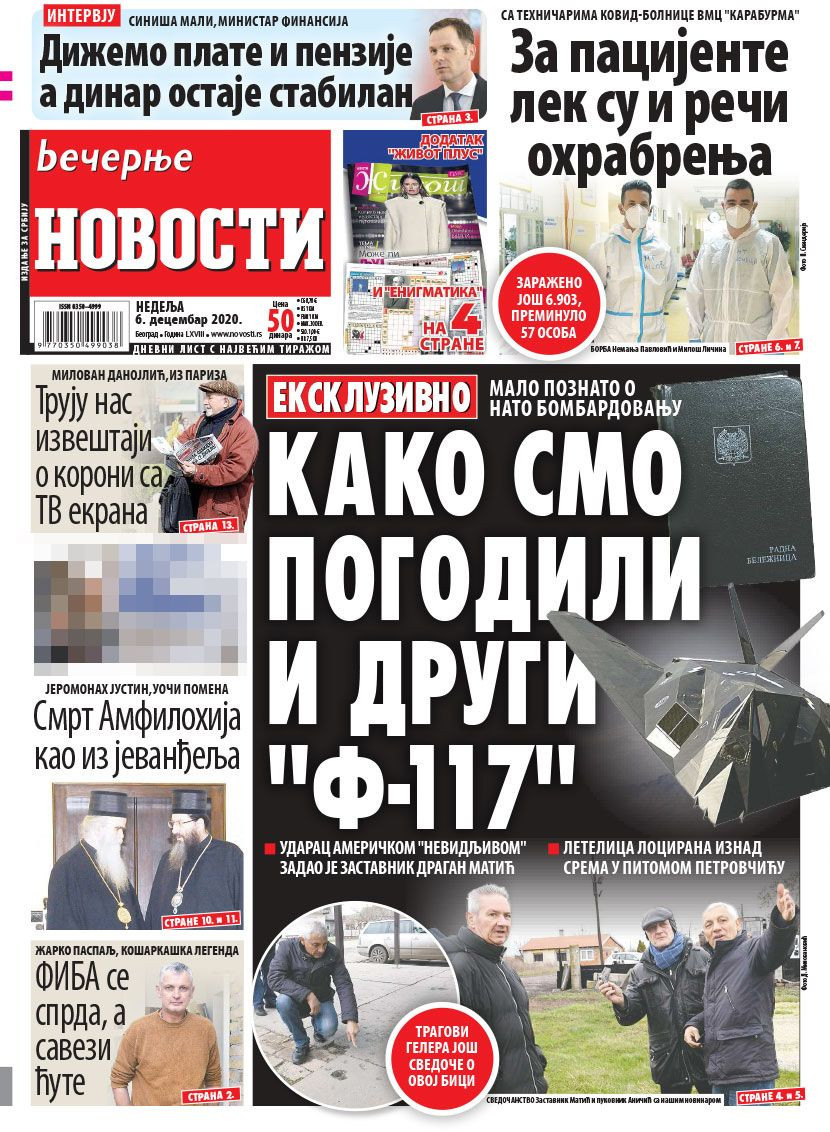Dnevne novine u Srbiji za nedelju, 6. decembar 2020. godine, na naslovnim stranama pišu o brojnim aktuelnim društveno-političkim temama i donose brojne ekskluzivne priče.