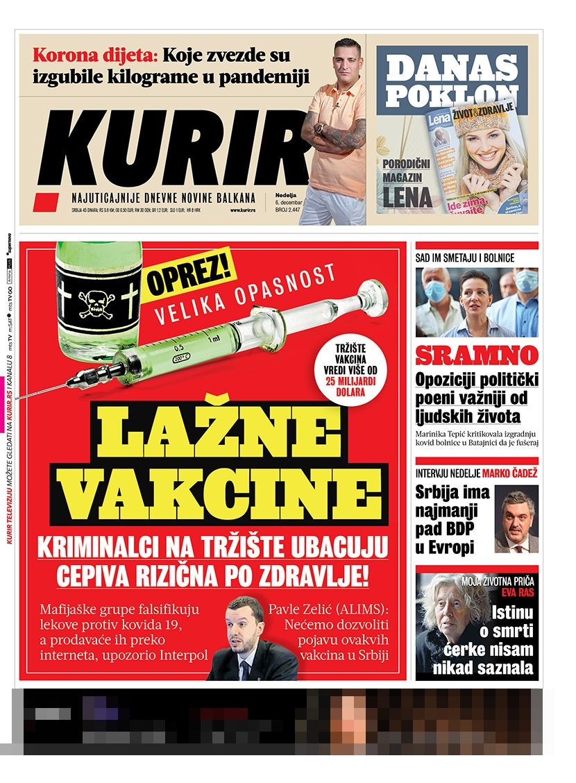 Prelistavanje štampe za nedelju, 6. decembar 2020. godine