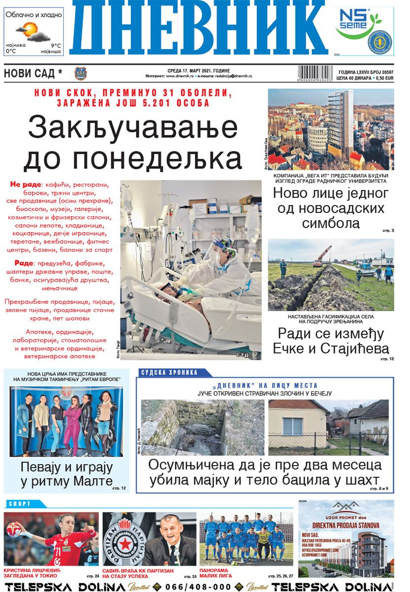 Dnevne novine u Srbiji za sredu, 17. mart 2021. godine, na naslovnim stranama najavljuju brojne aktuelne društveno-političke teme i donose ekskluzivne priče.