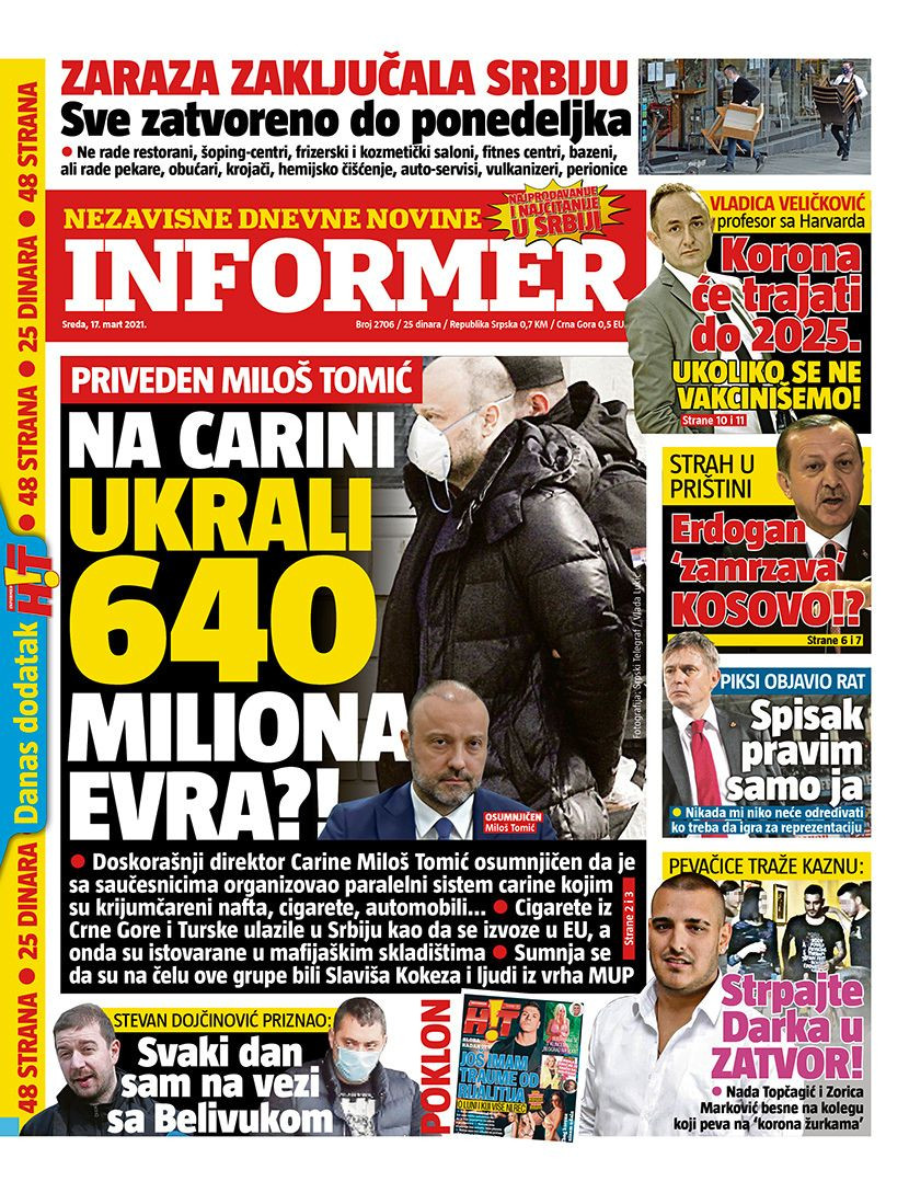 Prelistavanje štampe za sredu, 17. mart 2021. godine
