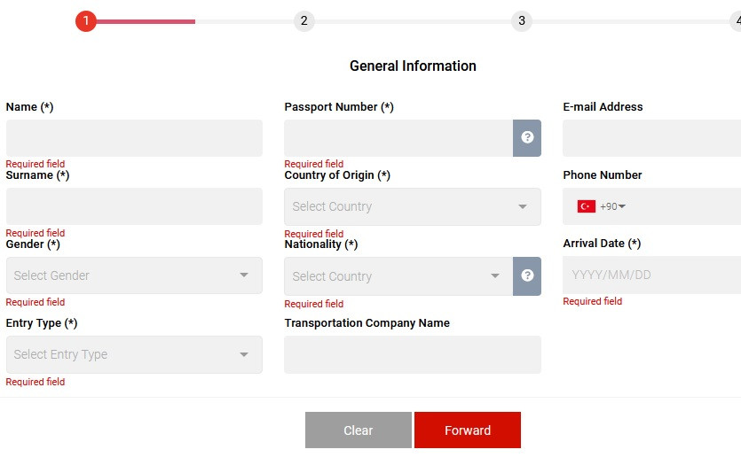 Obrazac se popunjava u nekoliko koraka, a prvi su osnovne informacije kao što su ime, prezime, zemlja porekla, broj pasoša, vreme kada se planira dolazak u Tursku i sl. nakon toga su potrebna još četiri koraka, gde ćete između ostalog morati da popuniti i informacije vezane za vašu istoriju kovid 19.