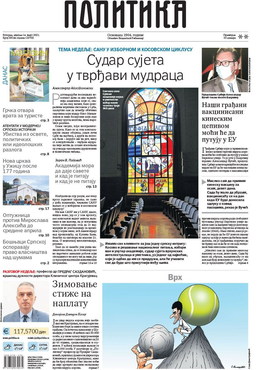Prelistavanje štampe za nedelju, 14. mart 2021. godine