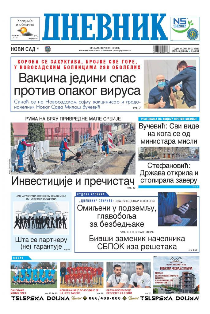 Dnevne novine u Srbiji za sredu, 10. mart 2021. godine, na naslovnim stranama najavljuju brojne aktuelne društveno-političke teme i donose ekskluzivne priče.
