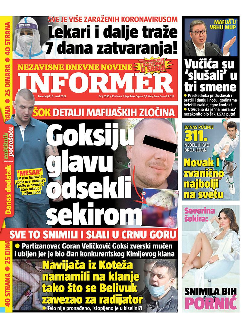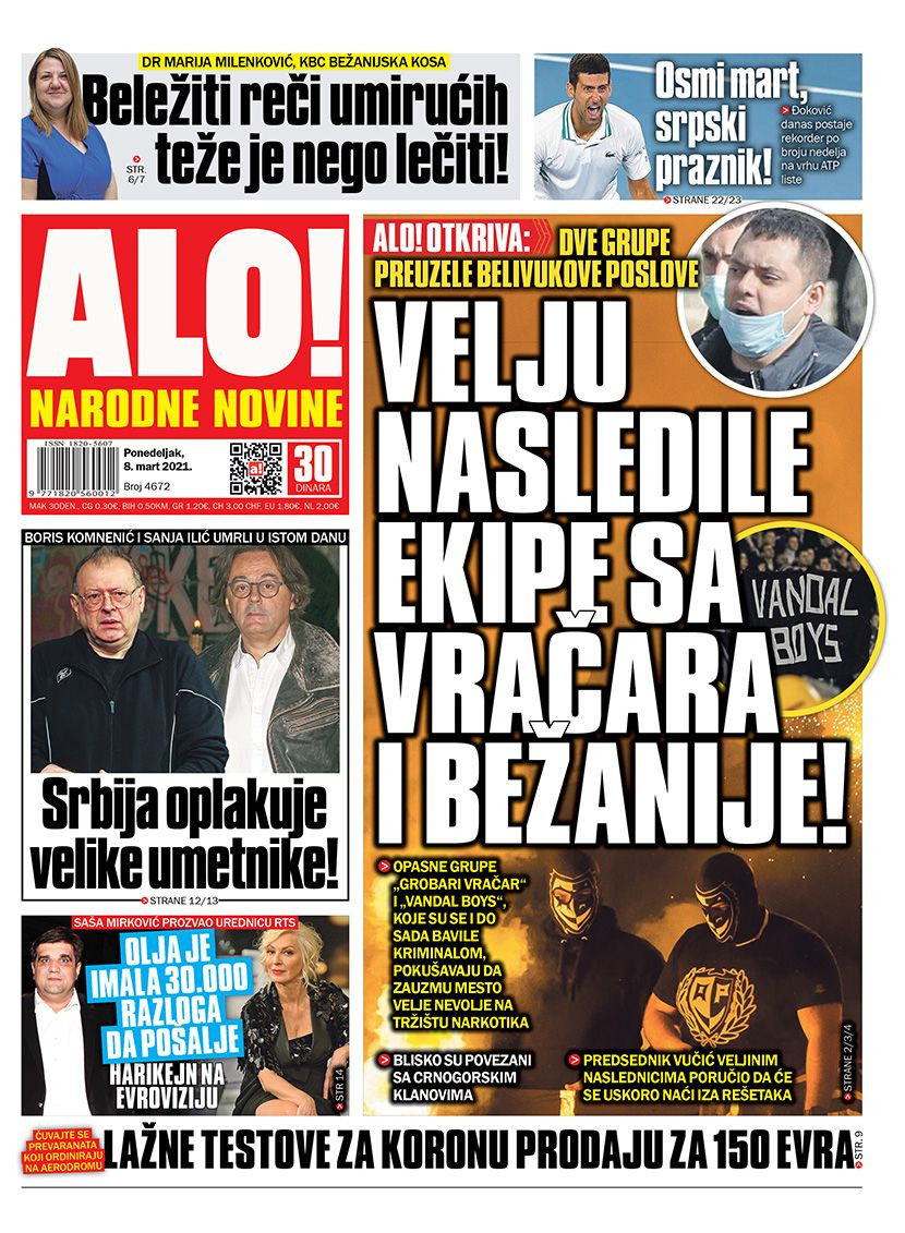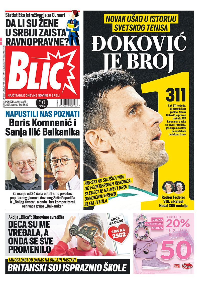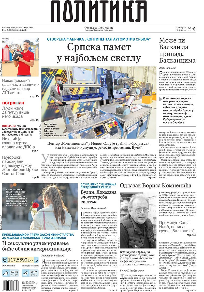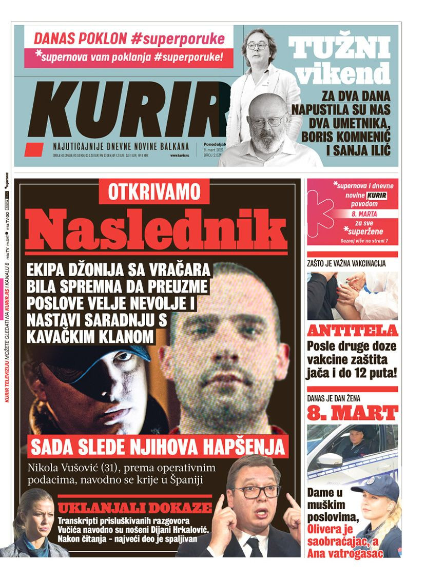 Dnevne novine u Srbiji za ponedeljak, 8. mart 2021. godine, na naslovnim stranama najavljuju brojne aktuelne društveno-političke teme i donose ekskluzivne priče.