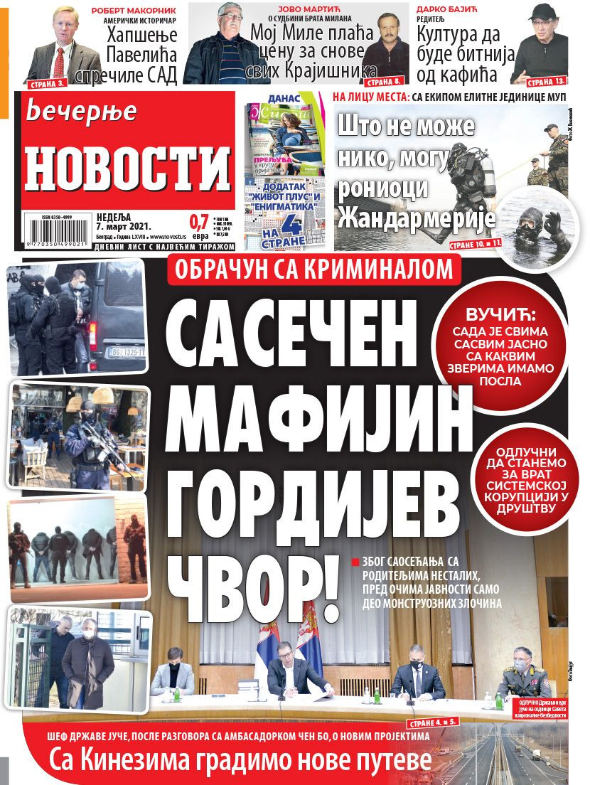 Dnevne novine u Srbiji za nedelju, 7. mart 2021. godine, na naslovnim stranama najavljuju brojne aktuelne društveno-političke teme i donose ekskluzivne priče.