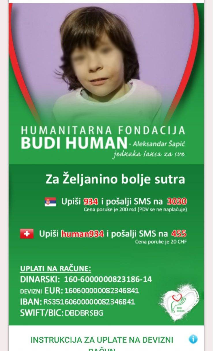 -Trebalo je da se nužna i spasonosna operacija obavi na Institutu za majku i dete u Beogradu, međutim, zbog Covid 19 i cele situacije nije bilo moguće da se sve završi. Na Institutu je i utvrđeno da Željena, pored svega, ima i prestanke disanja u snu što vrši veliki pritisak na pluća. Došlo se do toga da je jedina nada u Istanbulu. Sama operacija košta 110. 000 evra ali to je samo deo astronomskih troškova. Tamo bi smo morali da provedemo tri ili tri i po meseca. To značajno podiže cenu – zabrinuta je Željanina mama Milica.