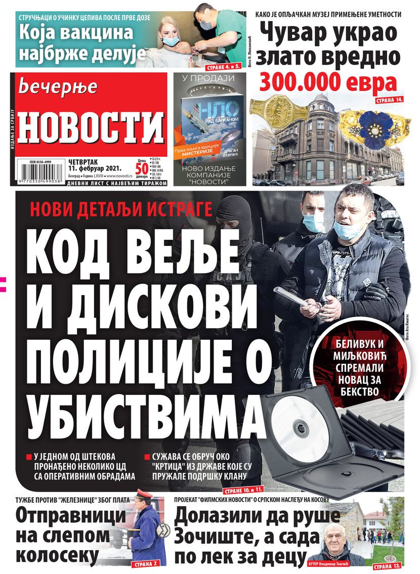 Dnevne novine u Srbiji za četvrtak, 11. februar 2021. godine, na naslovnim stranama najavljuju brojne aktuelne društveno-političke teme i donose ekskluzivne priče.