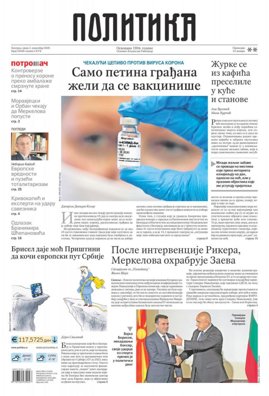 Prelistavanje štampe za sredu, 2.decembar 2020. godine