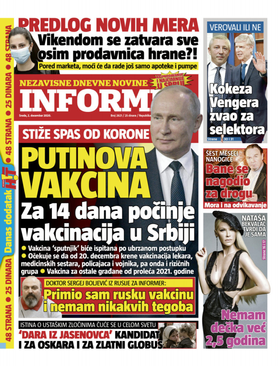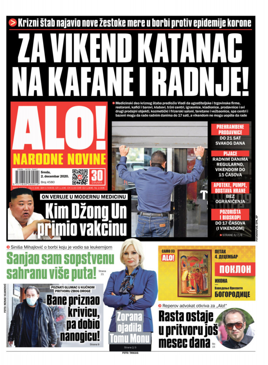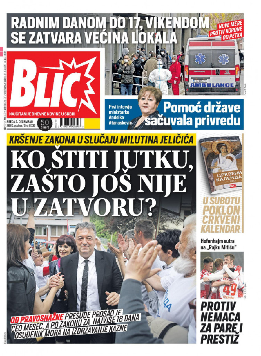 Dnevne novine u Srbiji za sredu, 2. decembar 2020. godine, na naslovnim stranama pišu o brojnim aktuelnim društveno-političkim temama i donose brojne ekskluzivne priče.