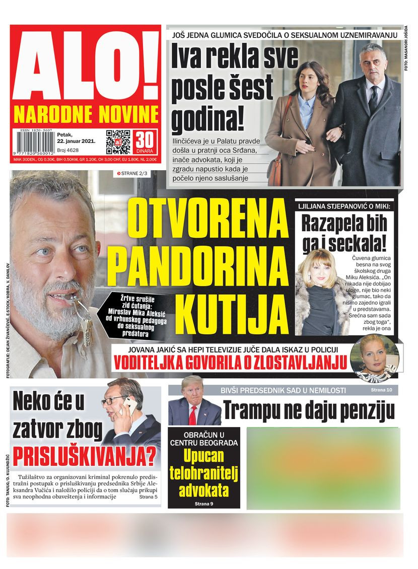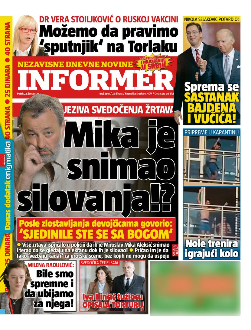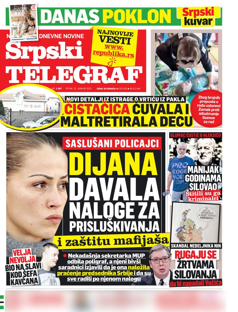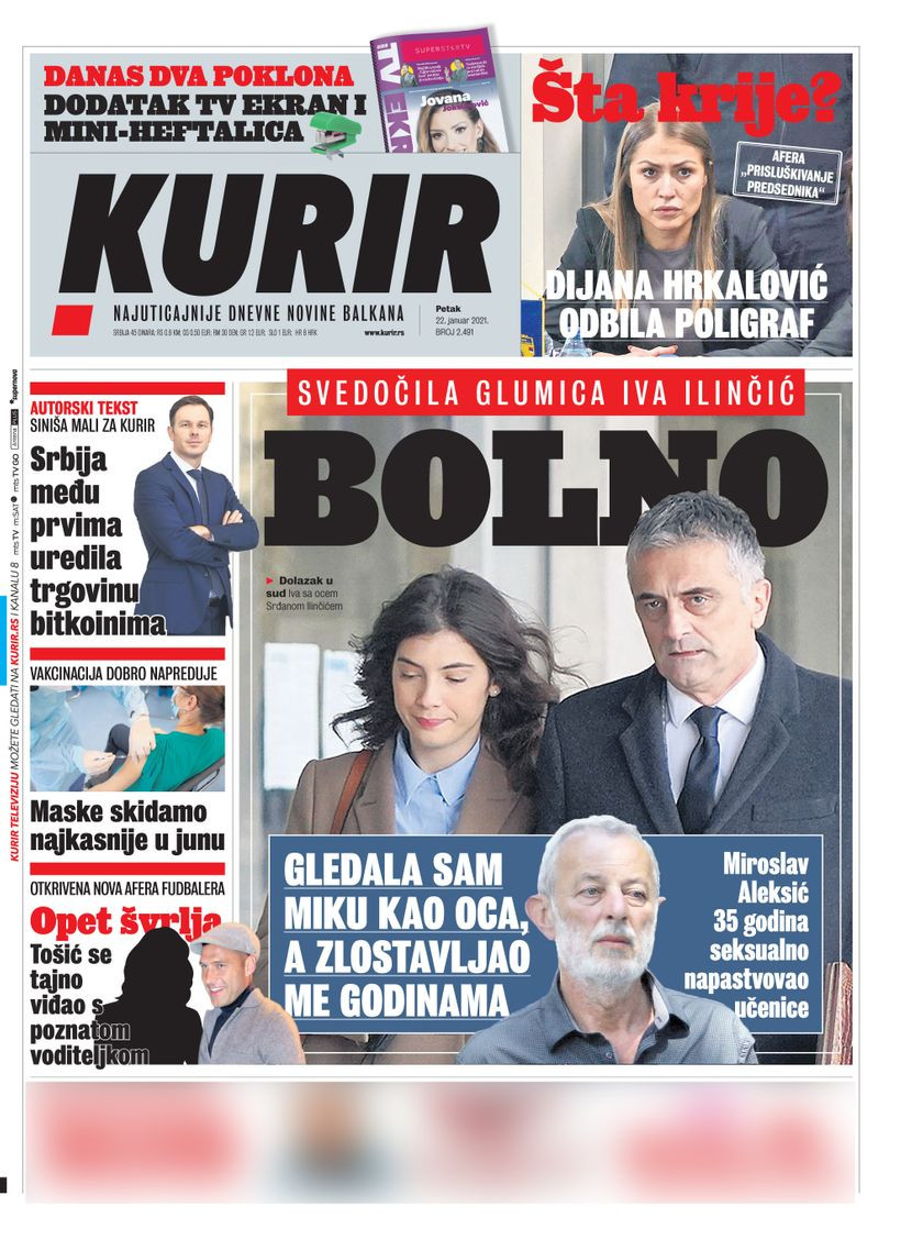 Dnevne novine u Srbiji za petak, 22. januar 2021. godine, na naslovnim stranama najavljuju brojne aktuelne društveno-političke teme i donose ekskluzivne priče.