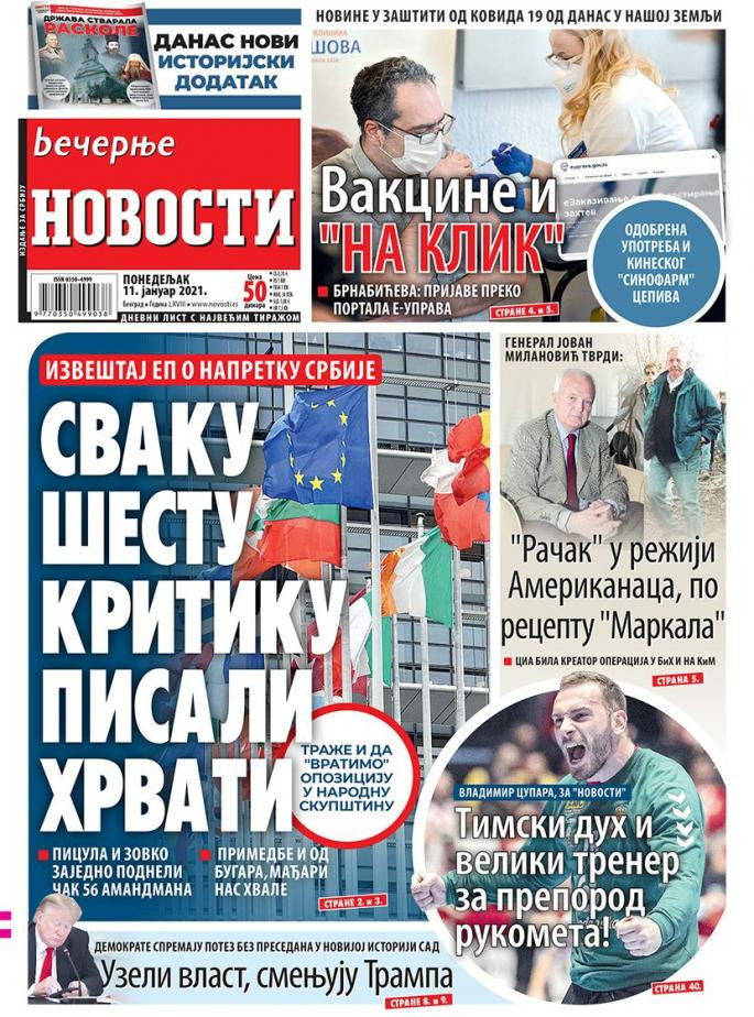 Prelistavanje štampe za ponedeljak, 11. januar 2021. godine