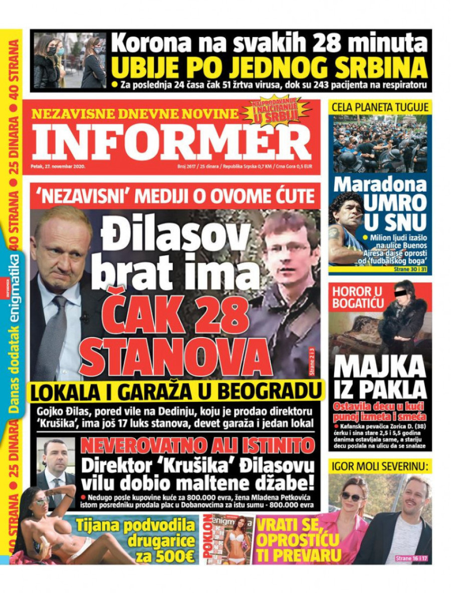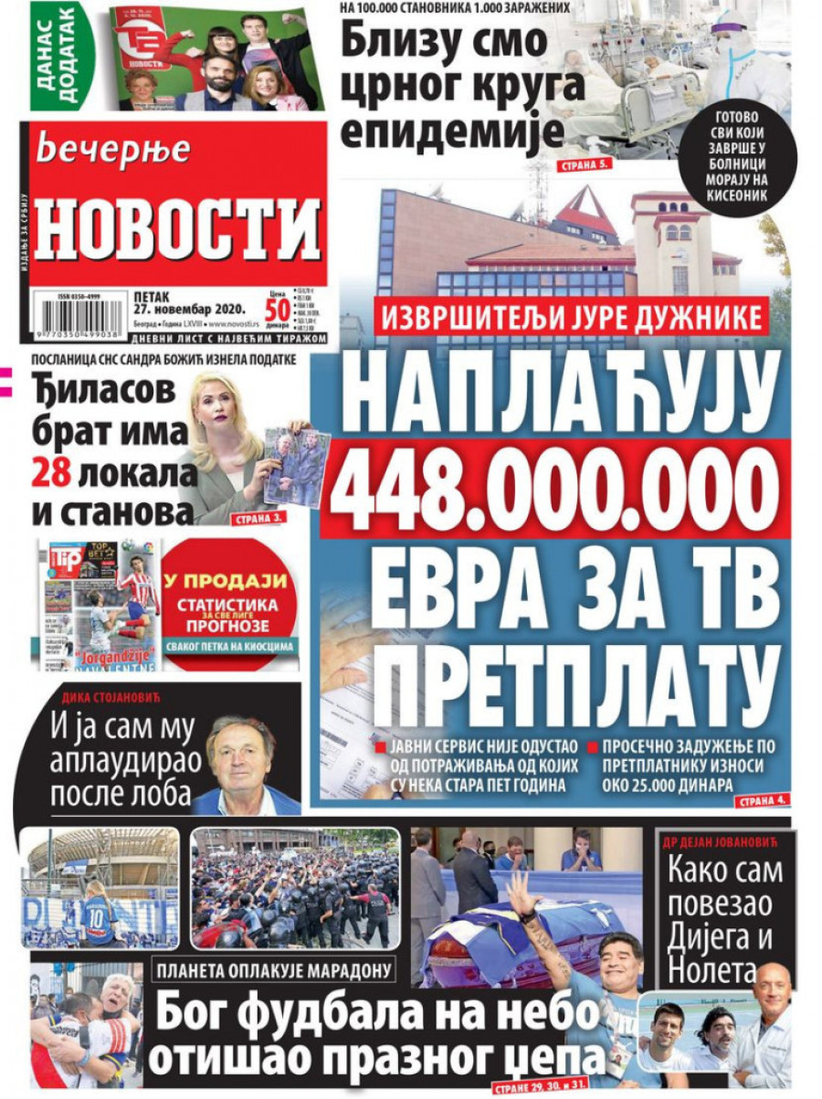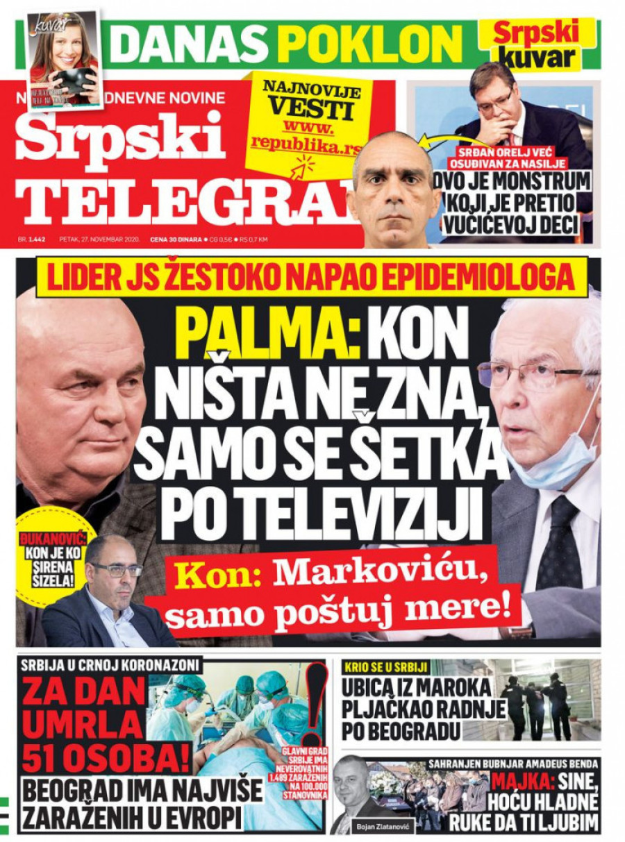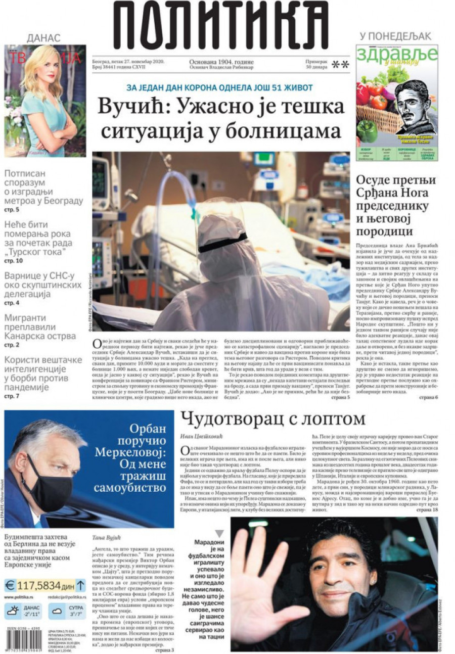 Prelistavanje štampe za petak, 27. novembar 2020. godine