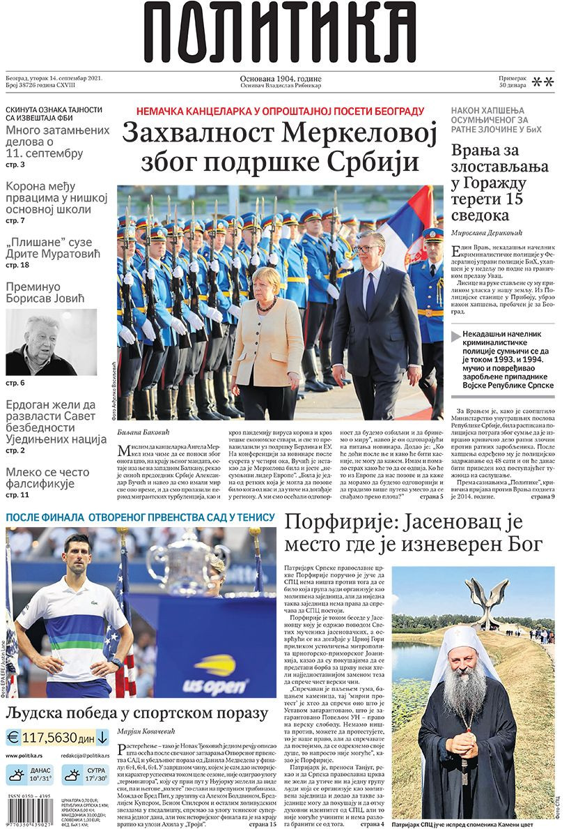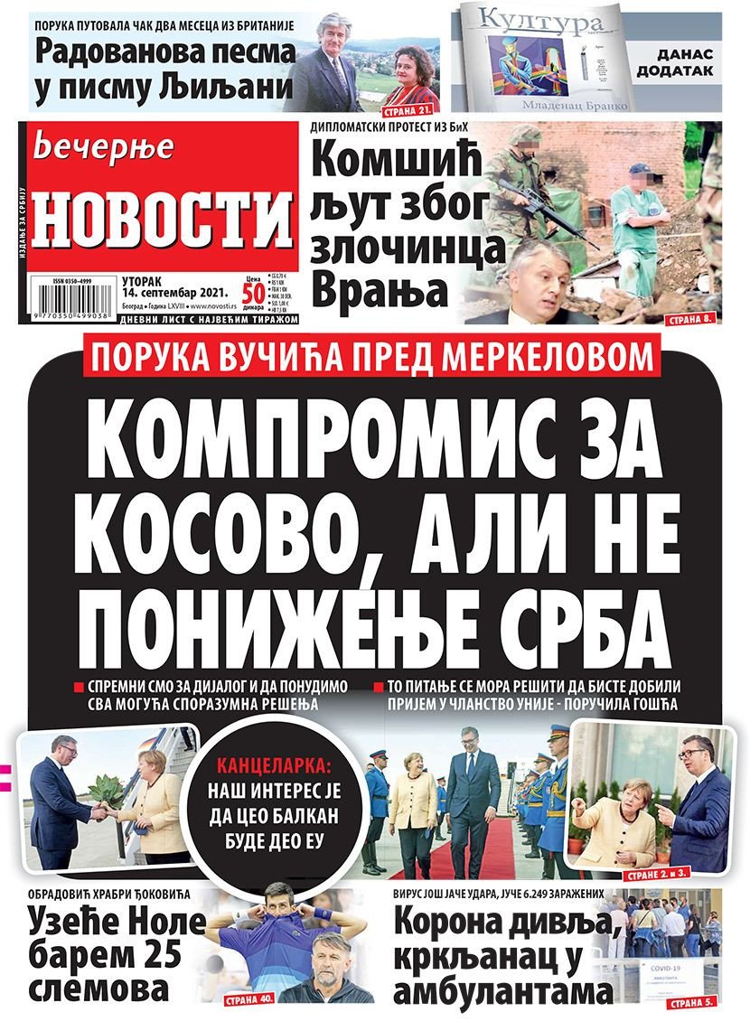 Prelistavanje štampe za utorak, 14. septembar 2021. godine