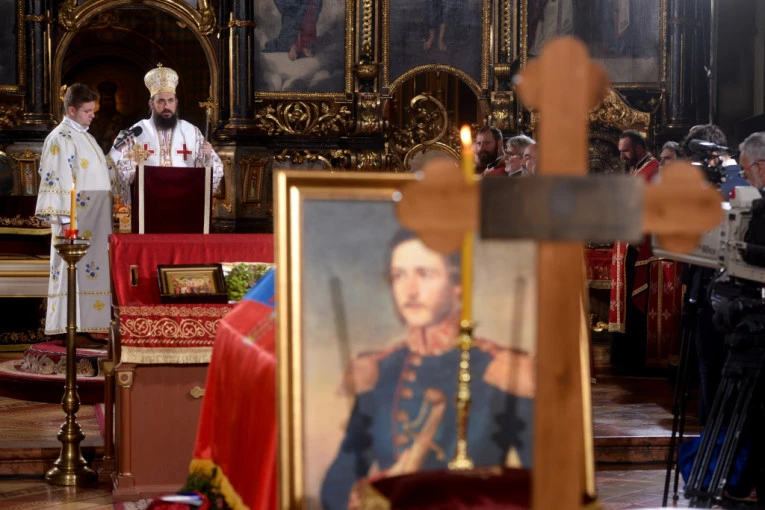 Ceremonija pohranjivanja posmrtnih ostataka generala Stratimirovića počela je liturgijom u Sabornom hramu u Sremskim Karlovcima, gde su juče preneti.