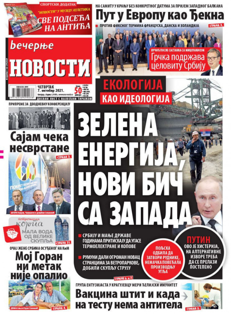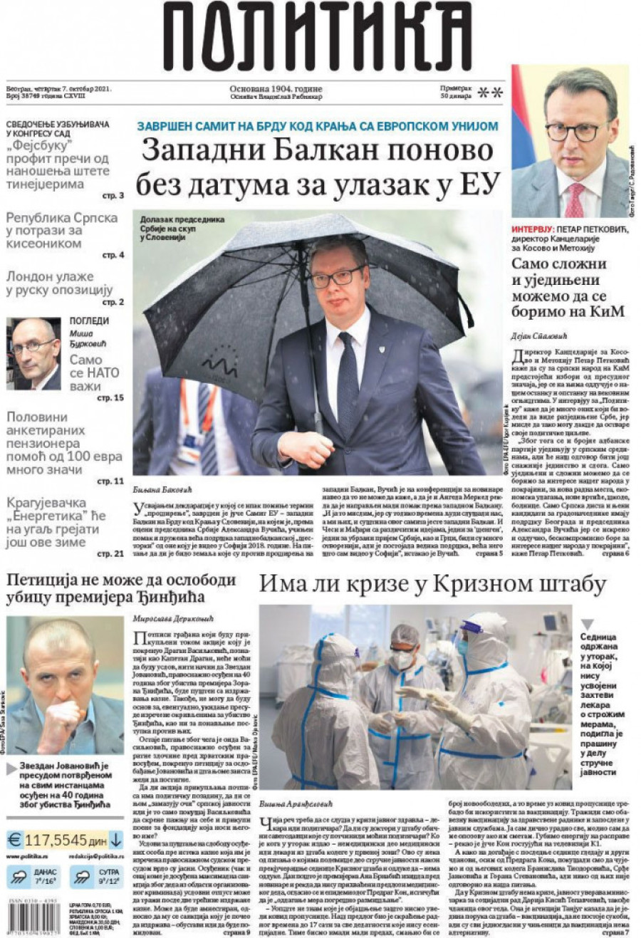 Prelistavanje štampe za četvrtak 7. oktobar 2021. godine