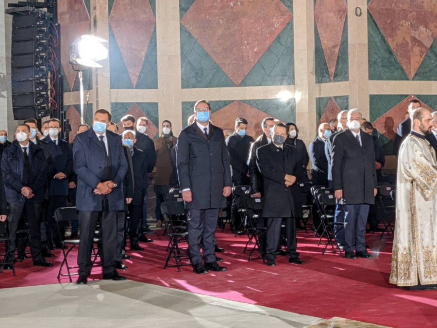 Malo posle 10 časova u hram Svetog Save stigao je predsednik Srbije Aleksandar Vučić i srpski član Predsedništva BiH Milorad Dodik.