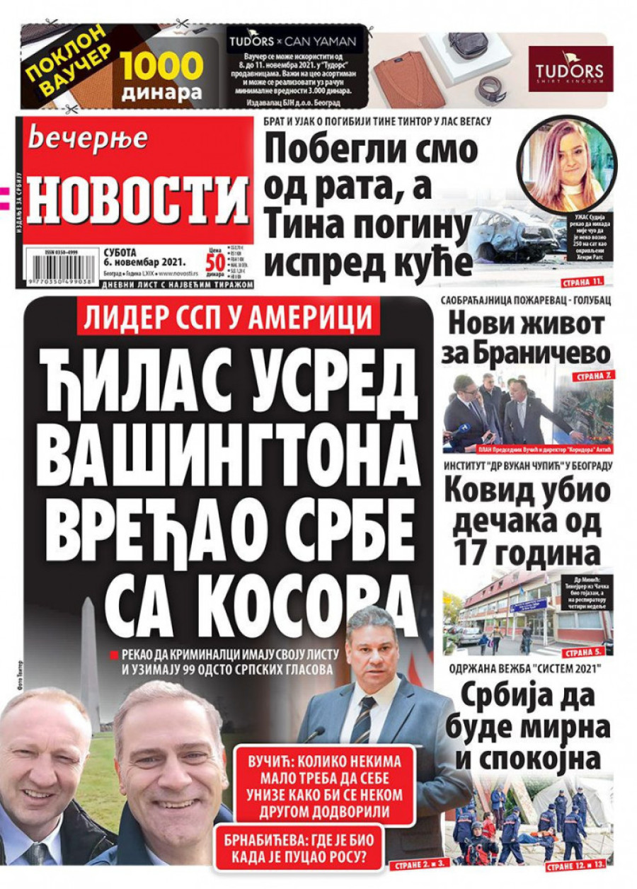 Prelistavanje štampe za subotu 6. novembar 2021. godine