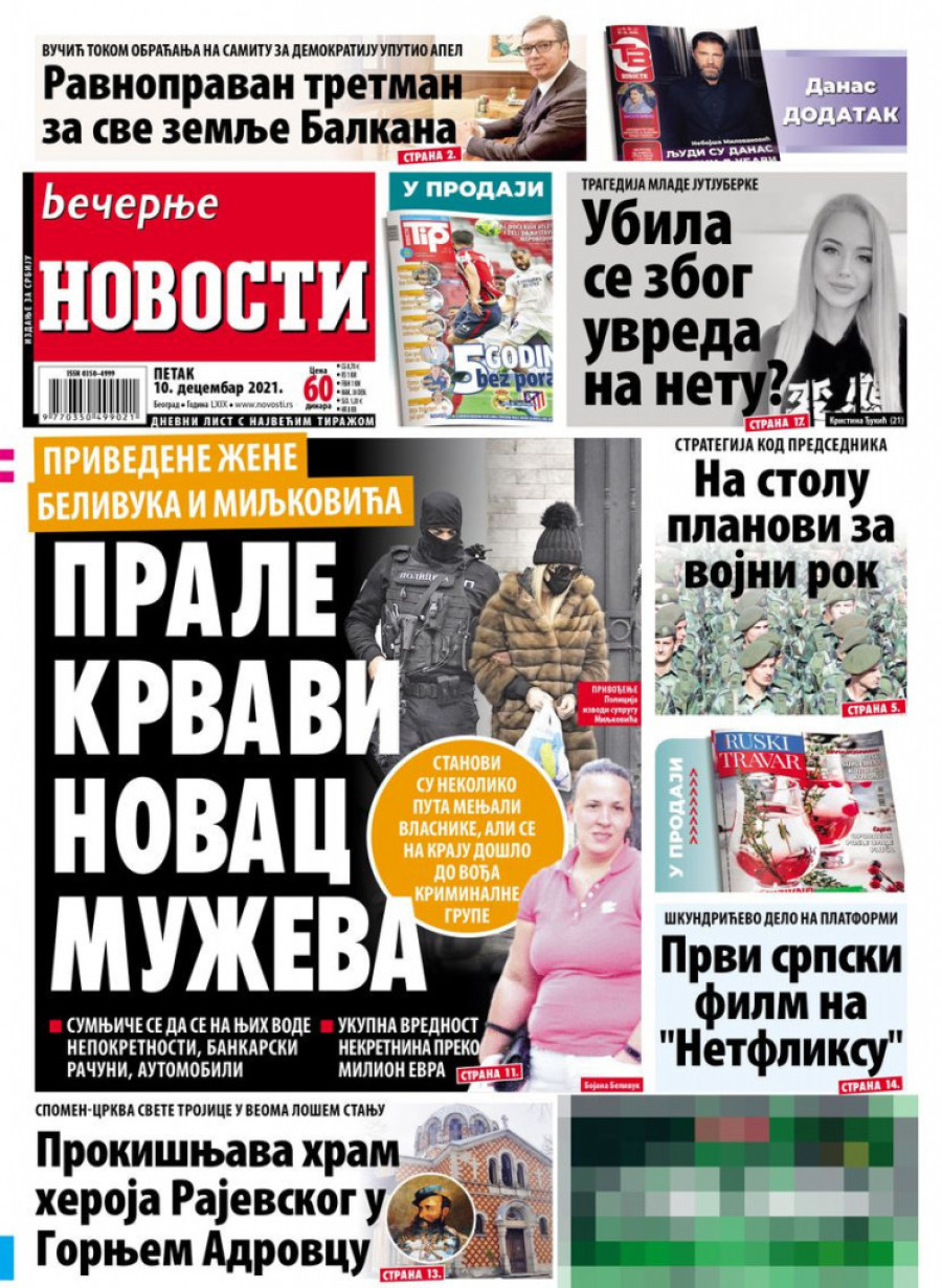 Prelistavanje štampe za petak 10. decembar 2021. godine